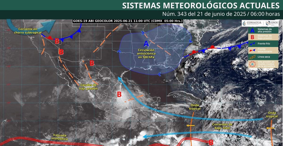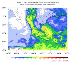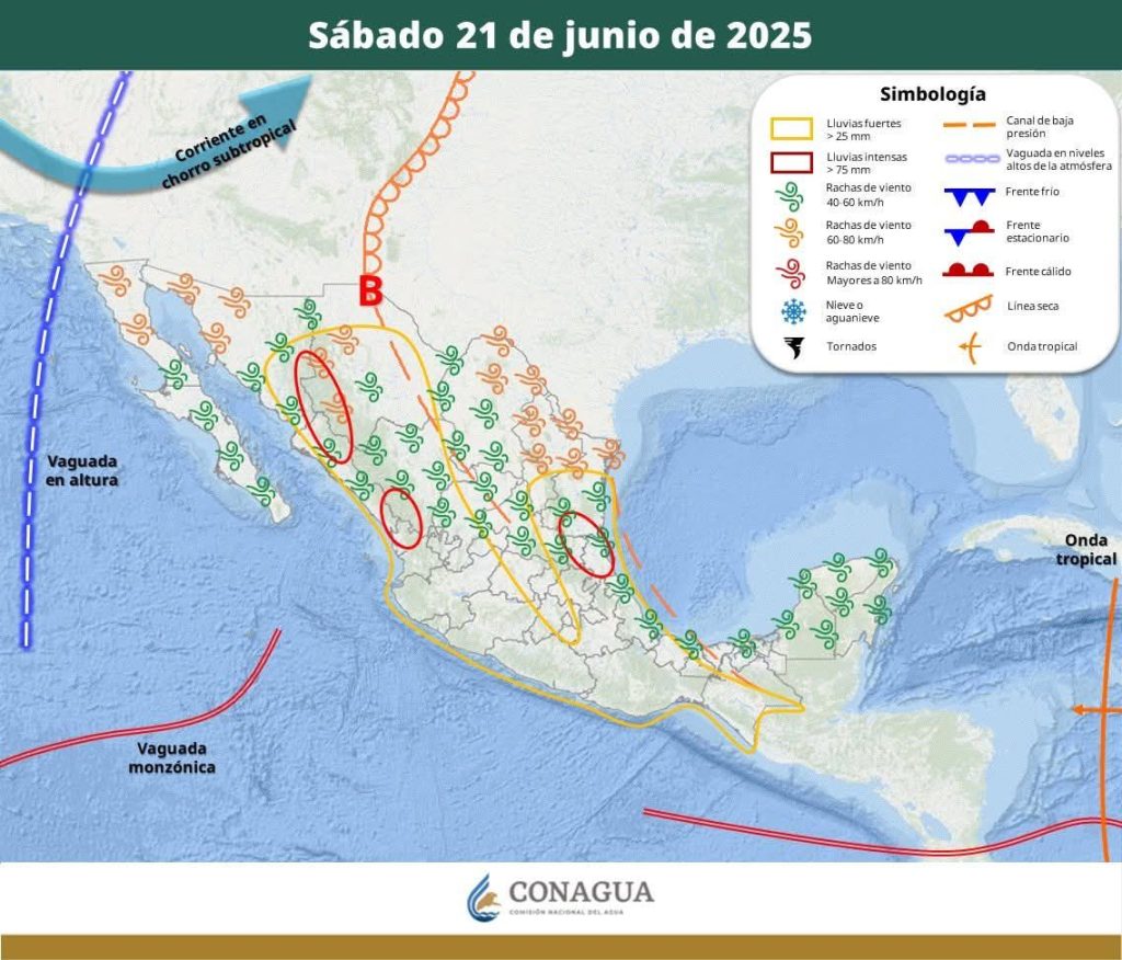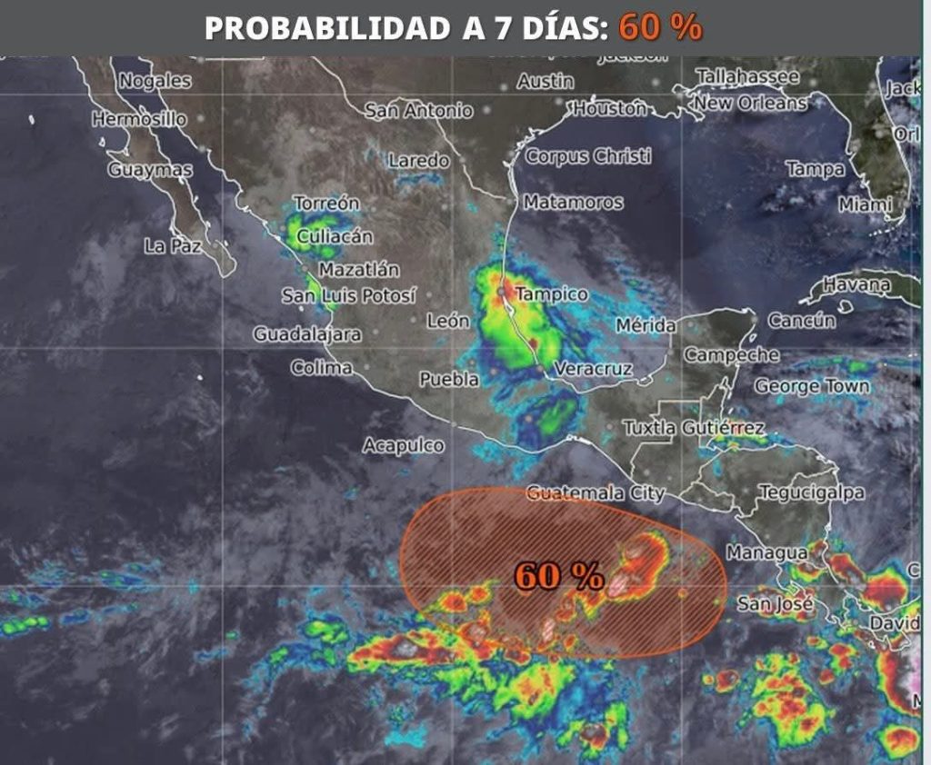 Nubosidad en gran parte del estado, bancos de niebla con posibilidad de lluvias fuertes con puntuales muy fuertes de 50 a 75 mm acompañadas de tormentas para los municipios del noroeste, oeste, centro, centro-sur, suroeste, sureste y sur del estado.