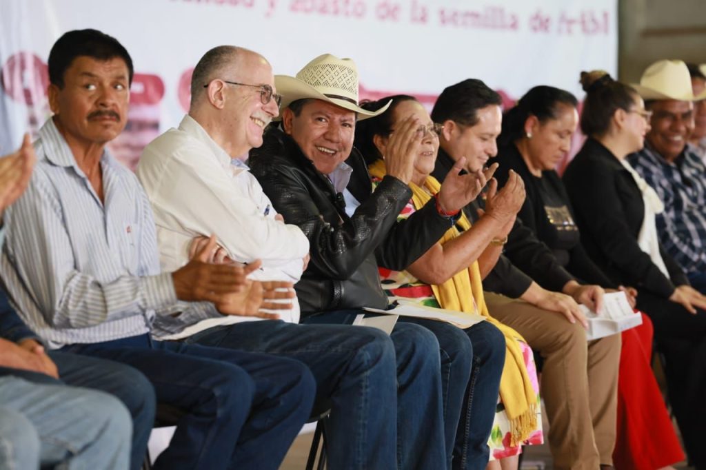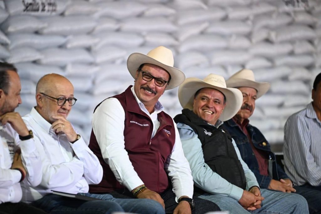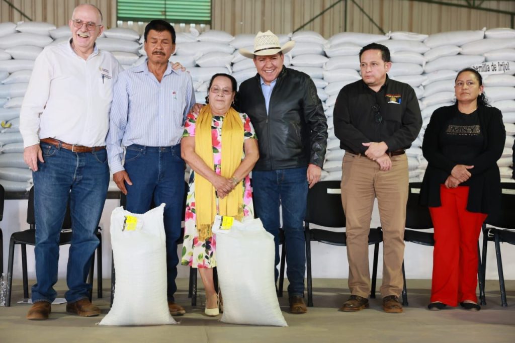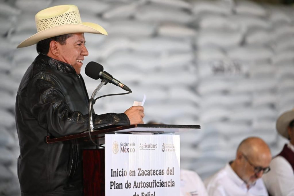 El Secretario de Agricultura y Desarrollo Rural, Julio Berdegué Sacristán, destacó que, con la entrega de 5 mil 700 toneladas de semilla certificada para 230 mil hectáreas, fertilizante gratuito, crédito accesible, seguro agropecuario y comercialización directa, el programa busca producir 1 millón 200 mil toneladas de frijol en México, lo que consolidará a Zacatecas como pilar de la soberanía alimentaria.