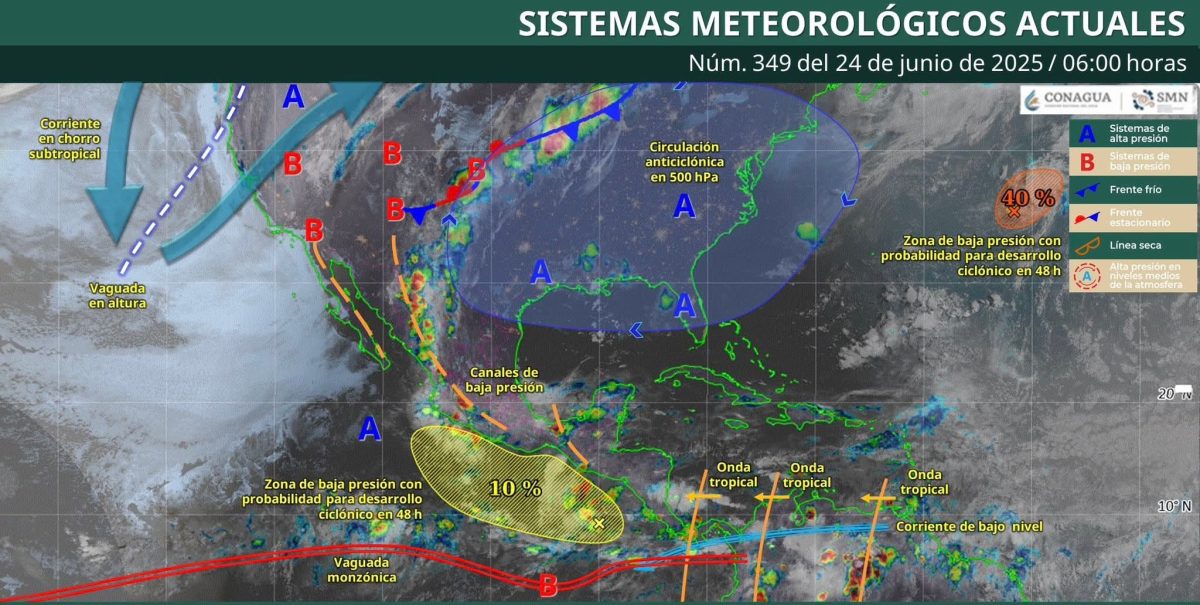 Nubosidad en gran parte del estado con bancos de niebla dispersa en las regiones del norte, noroeste y centro, posibilidad de lloviznas con intervalos de chubascos de 5 a 25 mm para los municipios del suroeste y sur del estado.