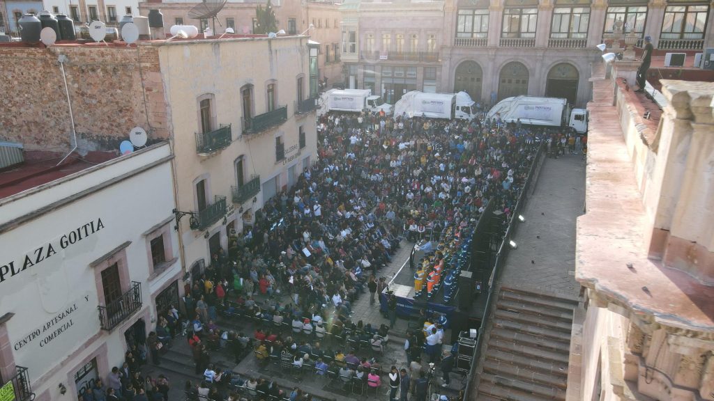 Zacatecas, Zacatecas.- En un evento emblemático celebrado en Plaza Goitia del Centro Histórico, el presidente municipal de Zacatecas, Miguel Varela, dio inicio al programa integral “Zacatecas Más Limpio que Nunca”. Esta iniciativa busca revitalizar la capital con acciones concretas y el fomento de la participación ciudadana para devolver a la ciudad su esplendor y grandeza.