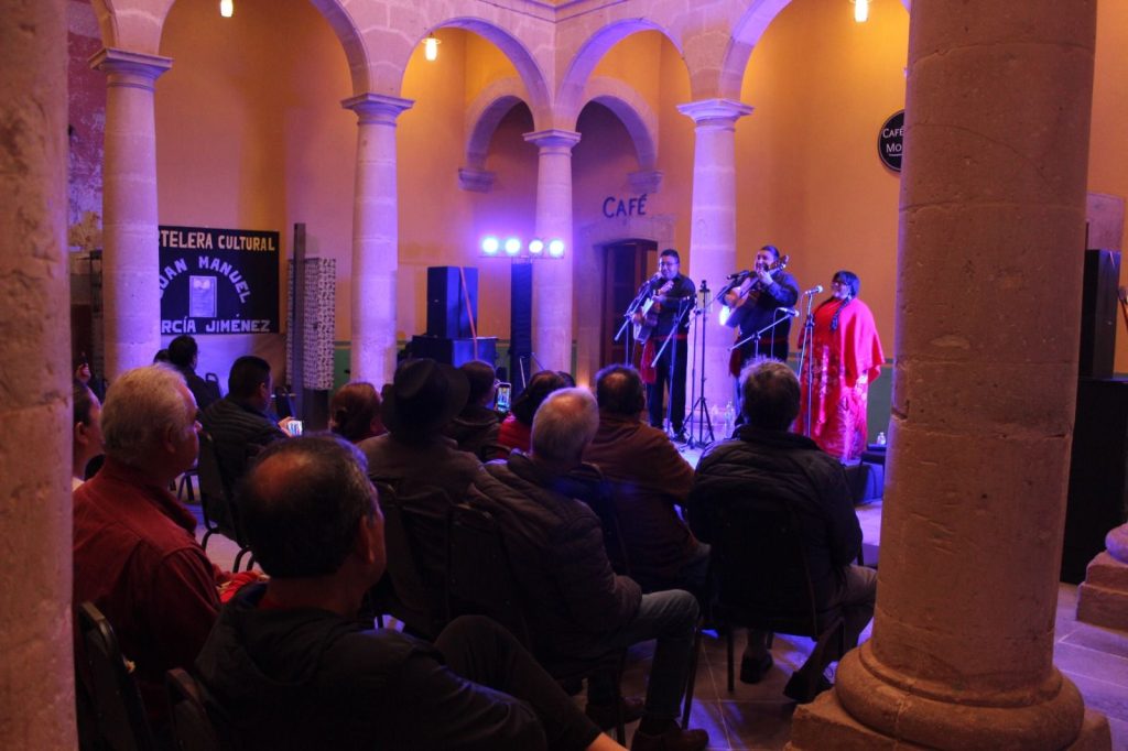 La velada continuó con la presentación de Ray Salas “Rayo de Plata”, cantautor guadalupense que ha dedicado su trayectoria a honrar la música de raíz y el corrido, como testimonio de la vida y las luchas de las y los zacatecanos.