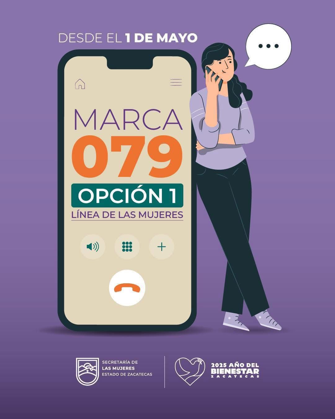 Además, permanece activa la Línea de las Mujeres: 079, opción 1, una vía de atención inmediata, gratuita y confidencial, disponible las 24 horas del día, los siete días de la semana, atendida por personal especializado con enfoque de género.