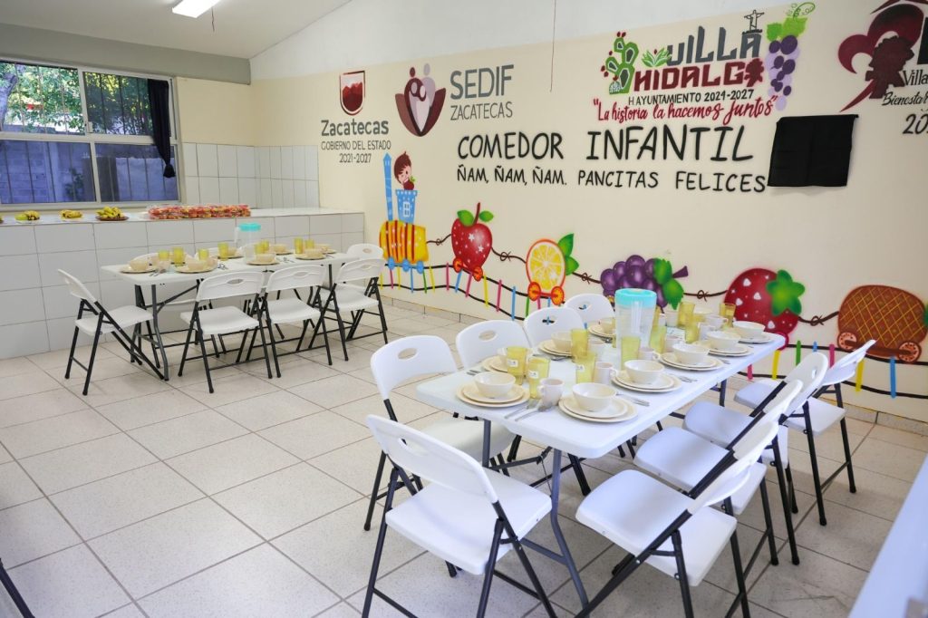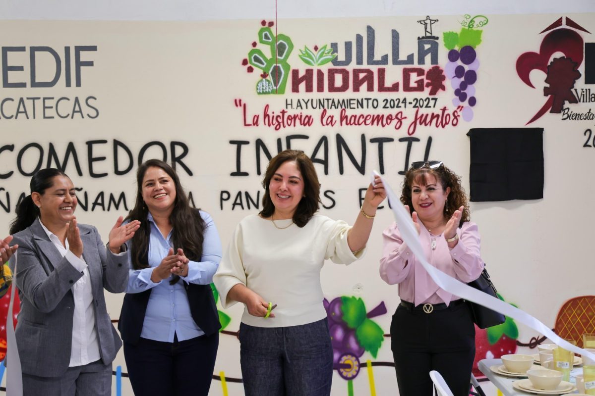 Villa Hidalgo, Zac., 9 de julio de 2025.- Como parte del compromiso del Gobierno de Zacatecas con el bienestar de la niñez, la Presidenta Honorífica del Sistema Estatal para el Desarrollo Integral de la Familia (SEDIF), Sara Hernández de Monreal, realizó una gira de trabajo por los municipios de Villa Hidalgo y Noria de Ángeles, donde inauguró dos comedores escolares que beneficiarán a niñas y niños de nivel preescolar.