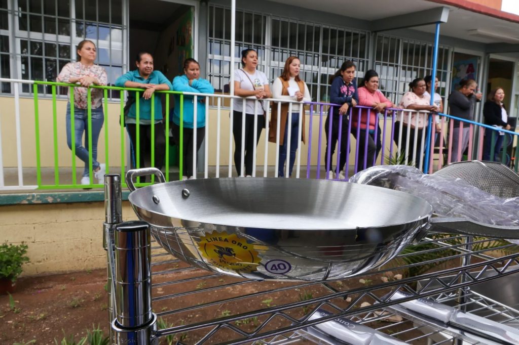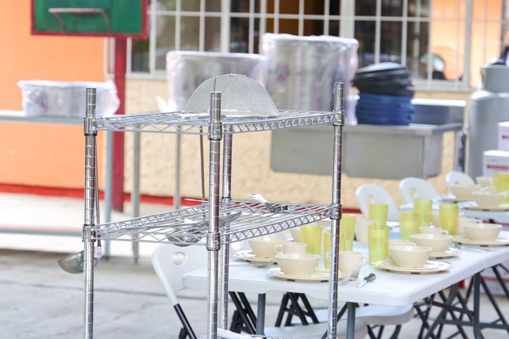 Este espacio fue equipado con utensilios e implementos de cocina como refrigeradores, mesas, sillas, licuadoras industriales, vasos, platos y estantes, además de recibir canastas alimentarias para iniciar su operación.