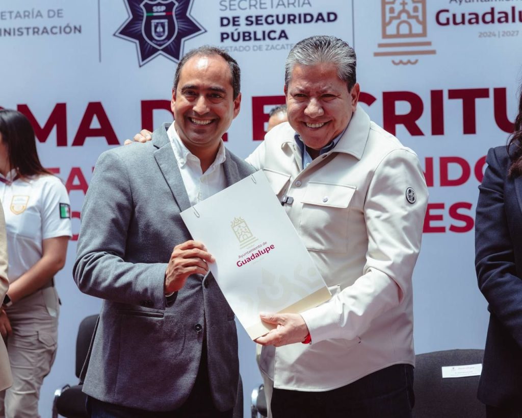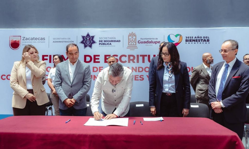 Con la firma de las escrituras para la donación del predio con destino a la construcción del C5, y contando con la presencia del Gobernador, David Monreal Ávila, el Ayuntamiento materializa legalmente la donación del predio efectuado al Gobierno del Estado.