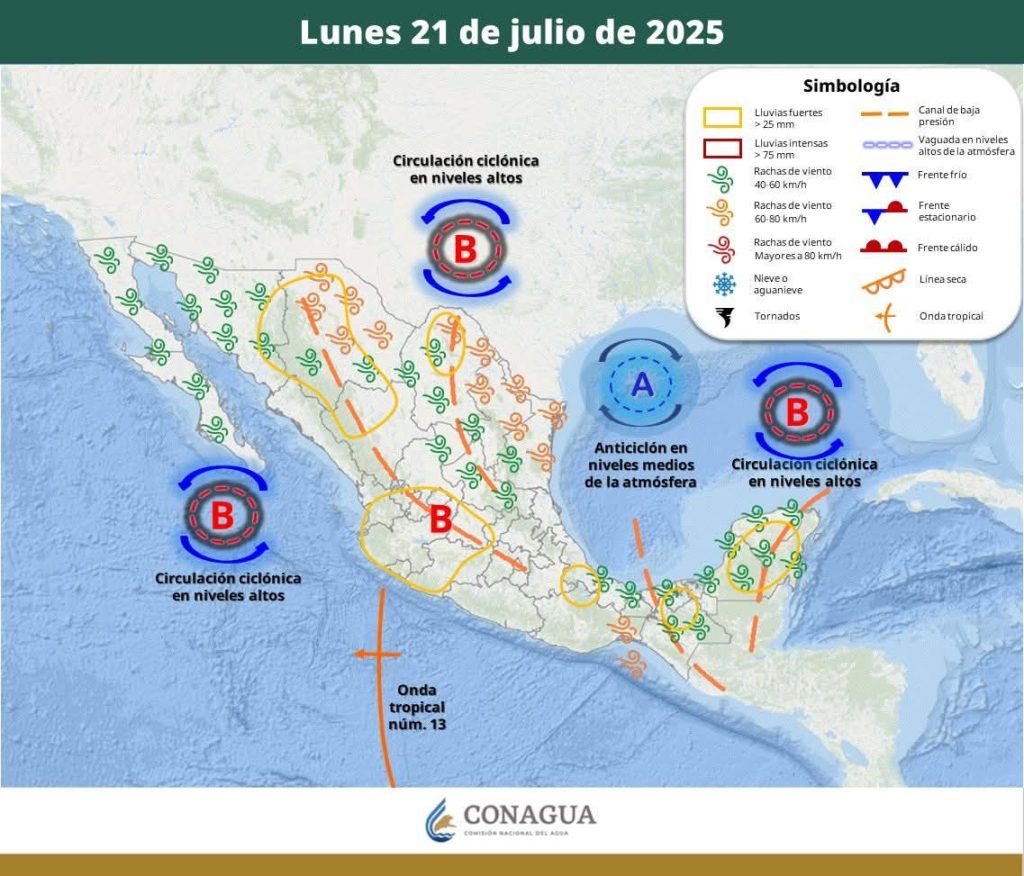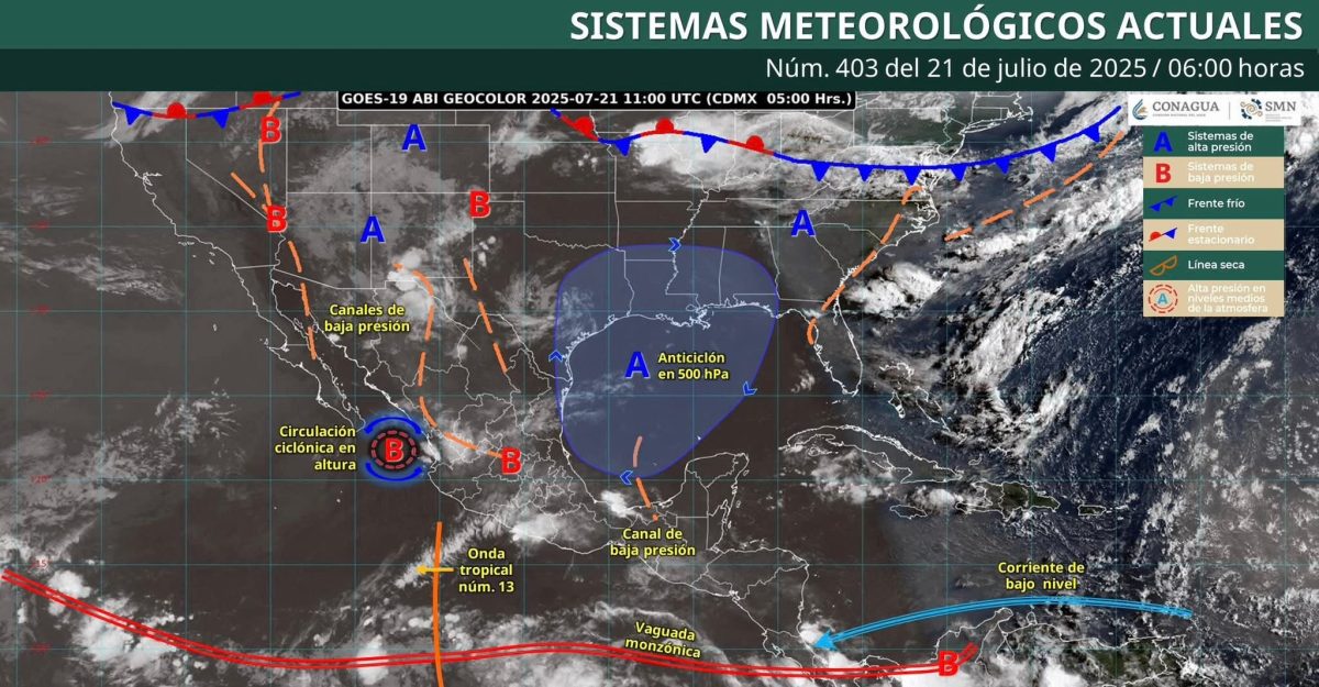 Nubosidad ocasional con bancos de niebla aislados y posibilidad de lluvias fuertes con puntuas muy fuertes de 50 a 75 mm para los municipios del oeste, centro-sur, suroeste y sur; con lloviznas aisladas en el resto del estado, durante la tarde y noche.