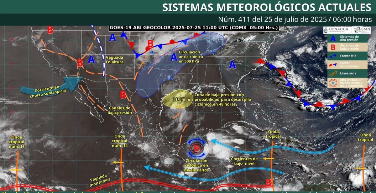 Nubosidad ocasional con bancos de niebla dispersas y posibilidad de lloviznas o lluvias aisladas de 0.1 a 5 mm para los municipios del occidente y suroeste; en el resto del estado con cielo despejado.