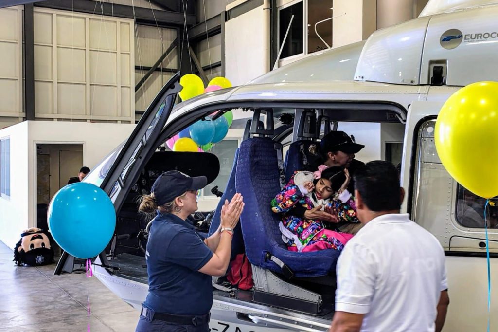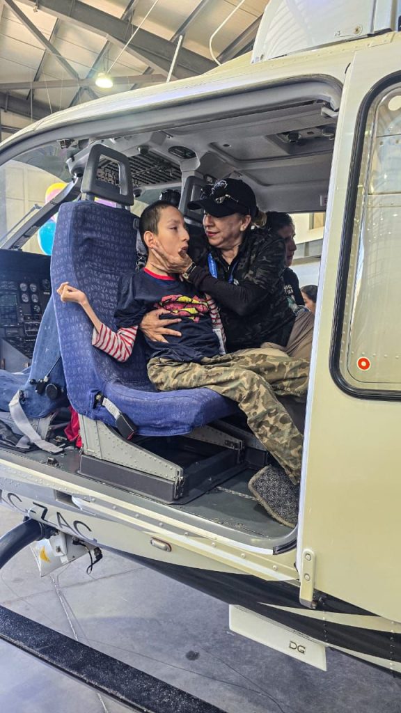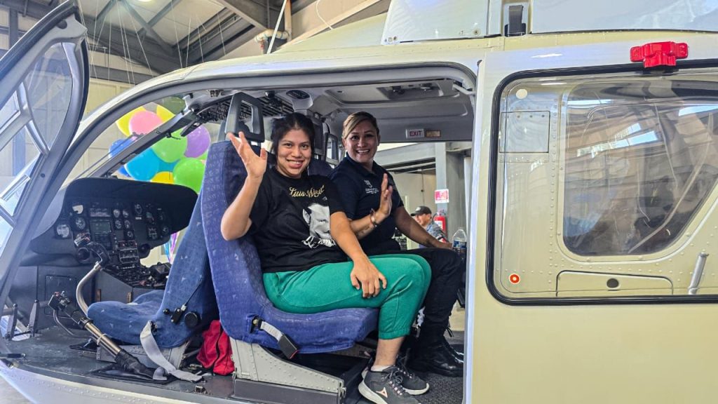 Uno de los momentos más especiales fue la visita al hangar de la SSP, donde observaron de cerca el helicóptero Bell 407, cuyo despegue causó gran emoción entre las y los asistentes.