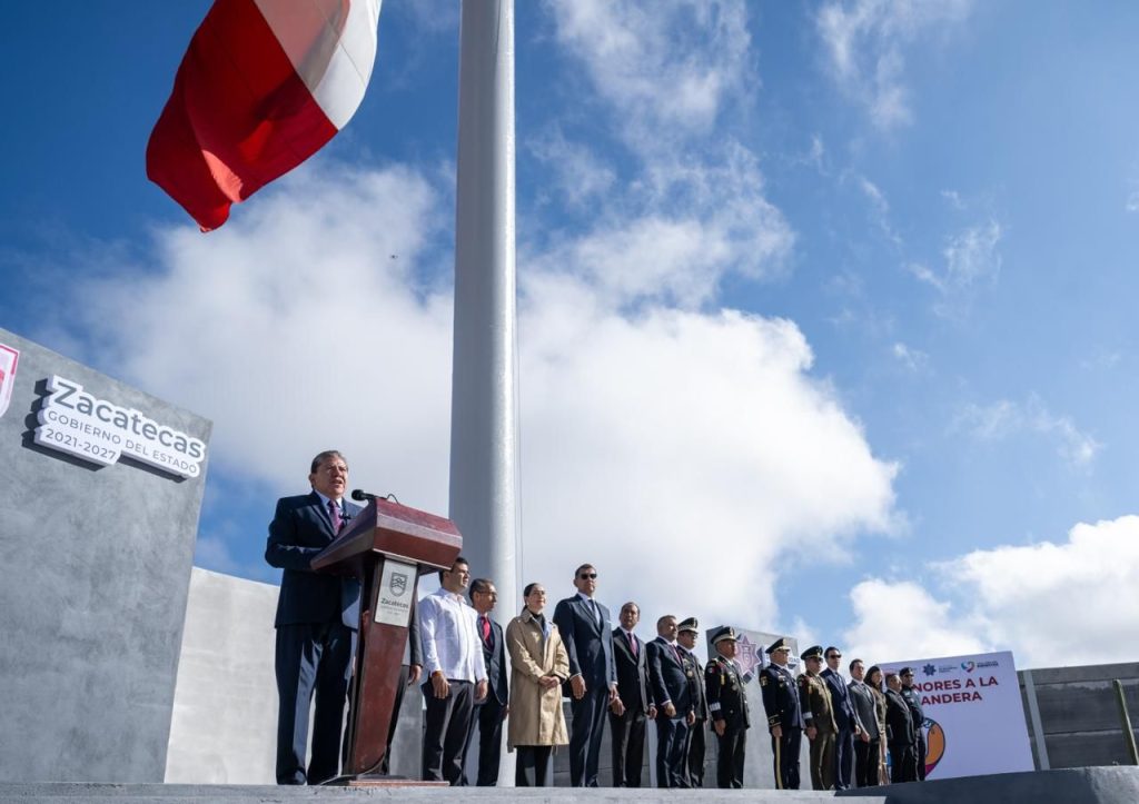 Guadalupe, Zac., 4 de septiembre de 2025.- Por primera vez, el Gobernador David Monreal Ávila encabezó la ceremonia de honores e izamiento de la bandera en la plaza cívica del nuevo Centro de Control, Comando, Comunicaciones, Cómputo e Inteligencia (C5i).