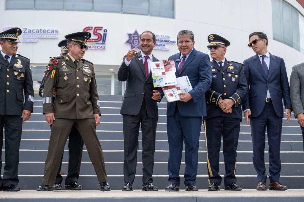 Durante el evento inaugural, el Gobernador David Monreal Ávila entregó patrullas, uniformes, vehículos y tres ambulancias destinadas a fortalecer las capacidades de las policías municipales, además de unidades para la Fiscalía General de Justicia y la Secretaría de Gobierno.