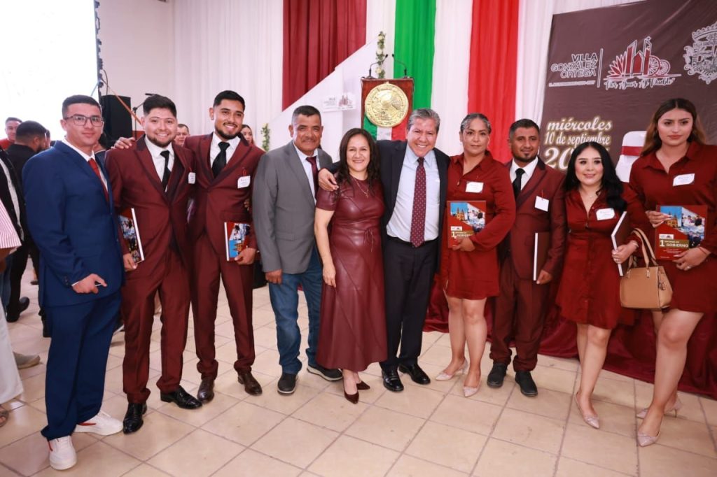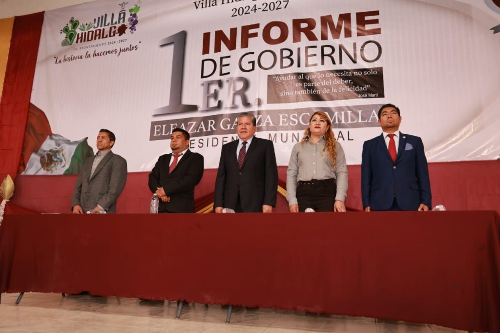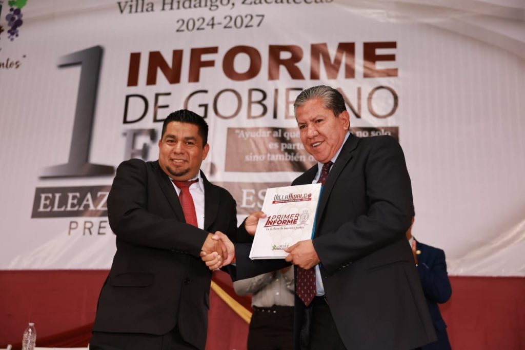 Miguel Auza, Zac., 11 de septiembre de 2025.- Al asistir como invitado especial a la ceremonia del Primer Informe de Gobierno del Presidente Municipal de Miguel Auza, Arturo Calderón Rueda, el Gobernador David Monreal Ávila ofreció total respaldo institucional, social y financiero para acelerar la transformación y el desarrollo de este territorio.