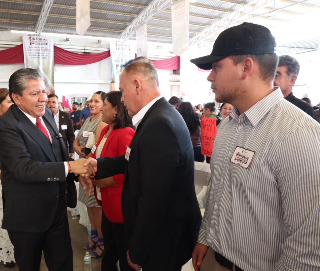 Asimismo, informó sobre la rehabilitación de caminos sacacosechas, el reencarpetamiento de la red carretera y el fomento a la capacitación, créditos y ferias locales para emprendedores, comerciantes y productores. “En este esfuerzo ha sido fundamental el apoyo del Gobernador David Monreal Ávila”, subrayó.