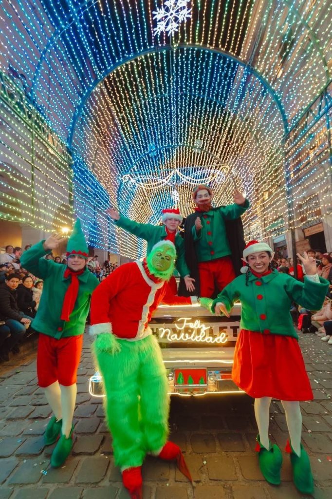 Durante el desfile, el público podrá disfrutar de la presencia de entrañables personajes como la familia del Grinch, Santa Claus y sus duendes, las Mujeres Caramelo, así como de impresionantes carros alegóricos, acompañados por la música de bandas sinfónicas, botargas, bastoneras y muchas sorpresas más, que llenarán el ambiente de color, ritmo y emoción.