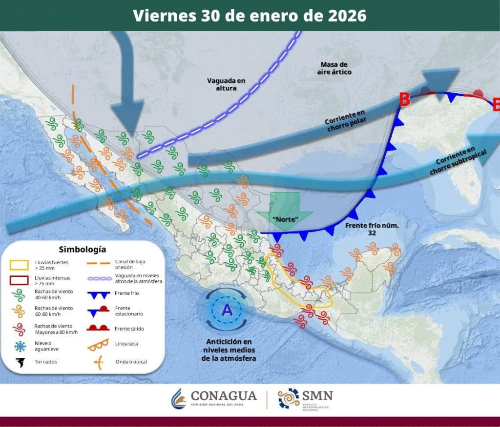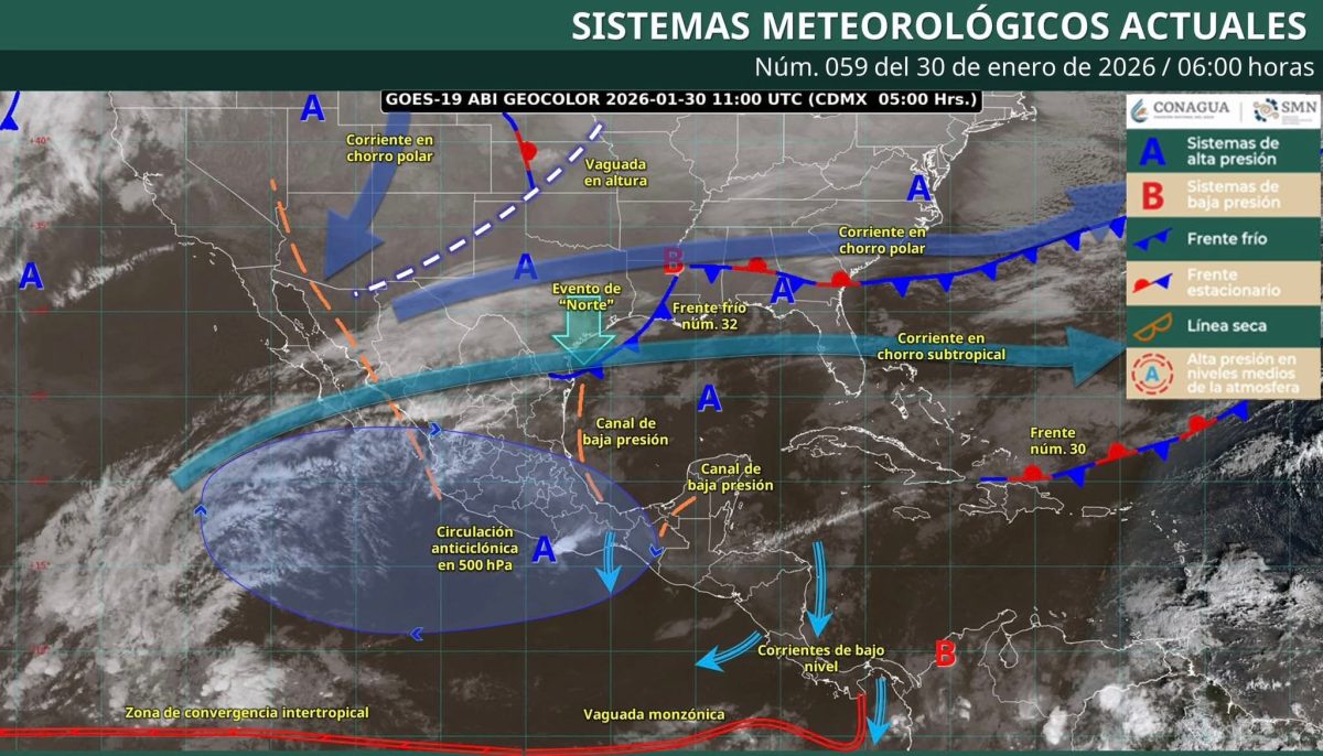Nubosidad ocasional en gran parte del estado, con bancos de niebla dispersa en los municipios del norte, noroeste, occidente, centro-sur, sureste, sureste y sur, no se esperan lluvias significativas en el estado.
