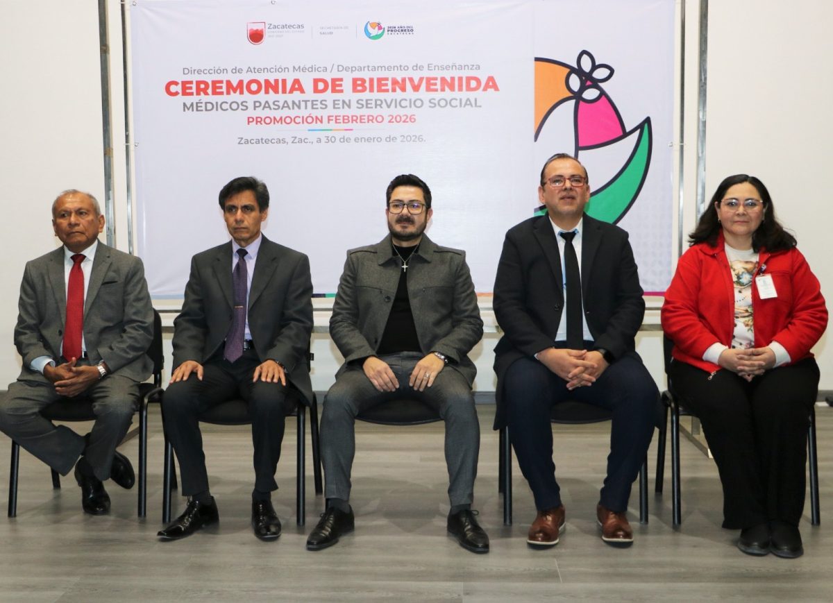 Zacatecas, Zac., 30 de enero de 2026.- En el marco del Año del Progreso, representantes de la Secretaría de Salud de Zacatecas (SSZ) recibieron a un grupo de Médicos Pasantes en Servicio Social, quienes complementarán su formación en unidades de todo el estado.