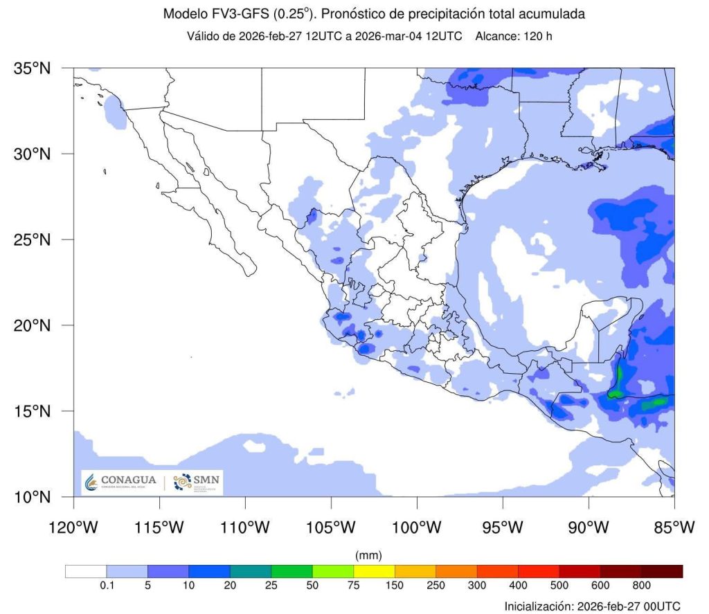 Nubosidad ocasional a mayormente despejado con bancos de niebla muy dispersa en los municipios del norte, no se esperan lluvias significativas en el estado.