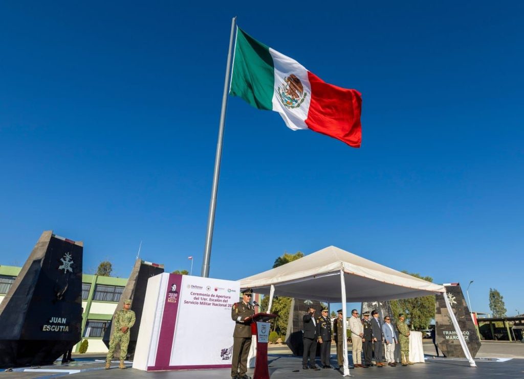 Mediante el Servicio Militar Nacional, dijo, las y los jóvenes se convierten no solamente en personas disciplinadas, en personas con orden, se convierten en un dique de contención, pero también en un acicate para alcanzar los ideales nacionales, particularmente un México con paz.