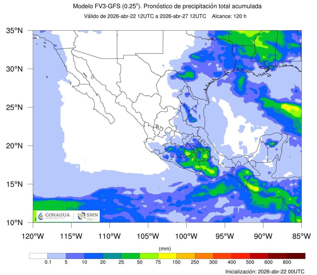 Nubosidad ocasional a mayormente despejado con bancos de niebla dispersa en los municipios del norte y sureste, no se esperan lluvias significativas en el estado.