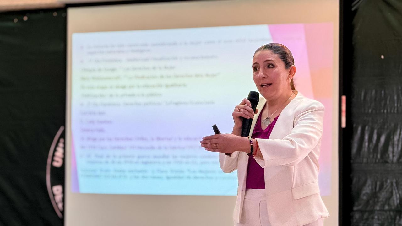En su exposición, abordó la evolución histórica de los derechos políticos de las mujeres, así como los avances logrados para garantizar su participación en la vida pública y los retos que aún persisten frente a prácticas que buscan limitar o desincentivar su presencia en los espacios de toma de decisiones.