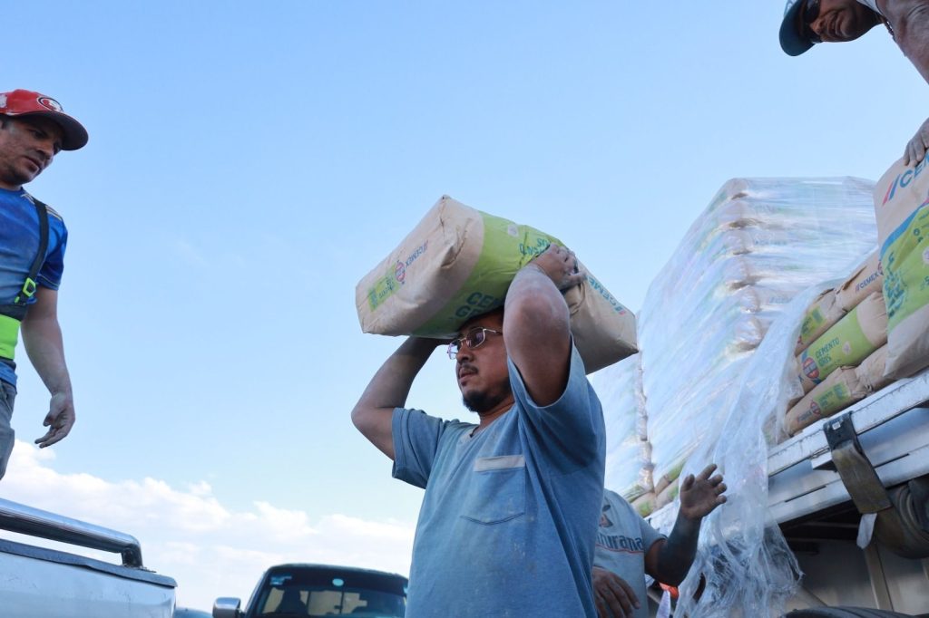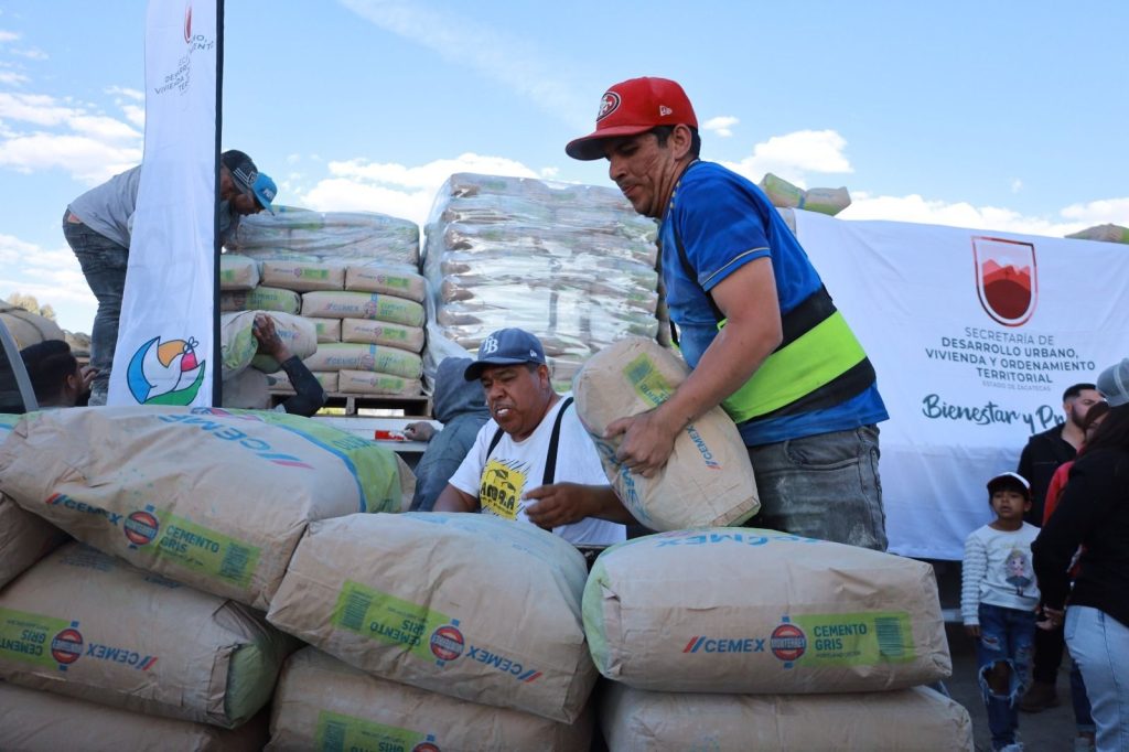 ● En Miguel Auza, la administración estatal entregó 2 mil 710 bultos de cemento y 100 paquetes de techo de lámina