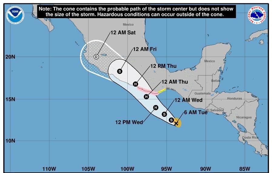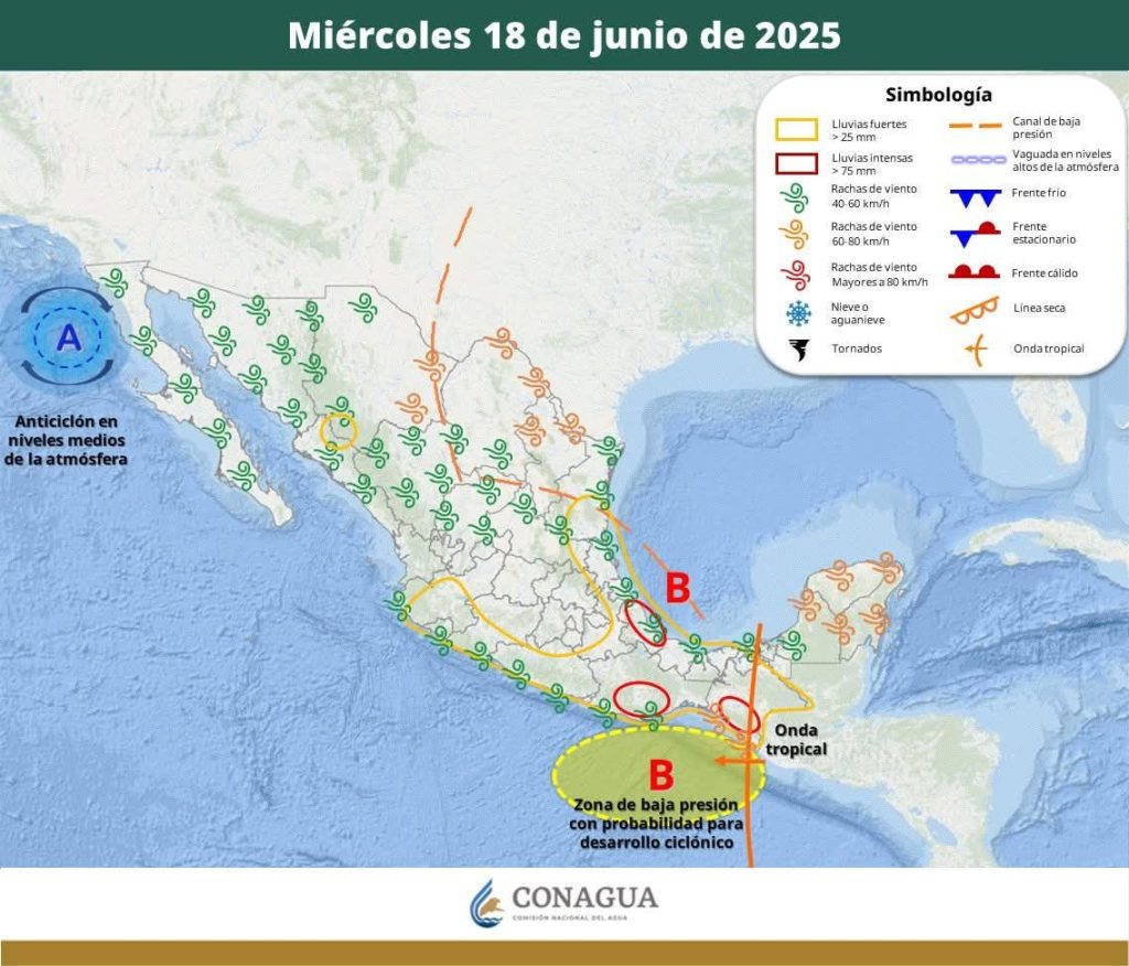 Nubosidad ocasional con bancos de niebla aisladas y posibilidad de lluvias con intervalos de chubascos de 5 a 25 mm para los municipios del oriente, suroeste y sur del estado.