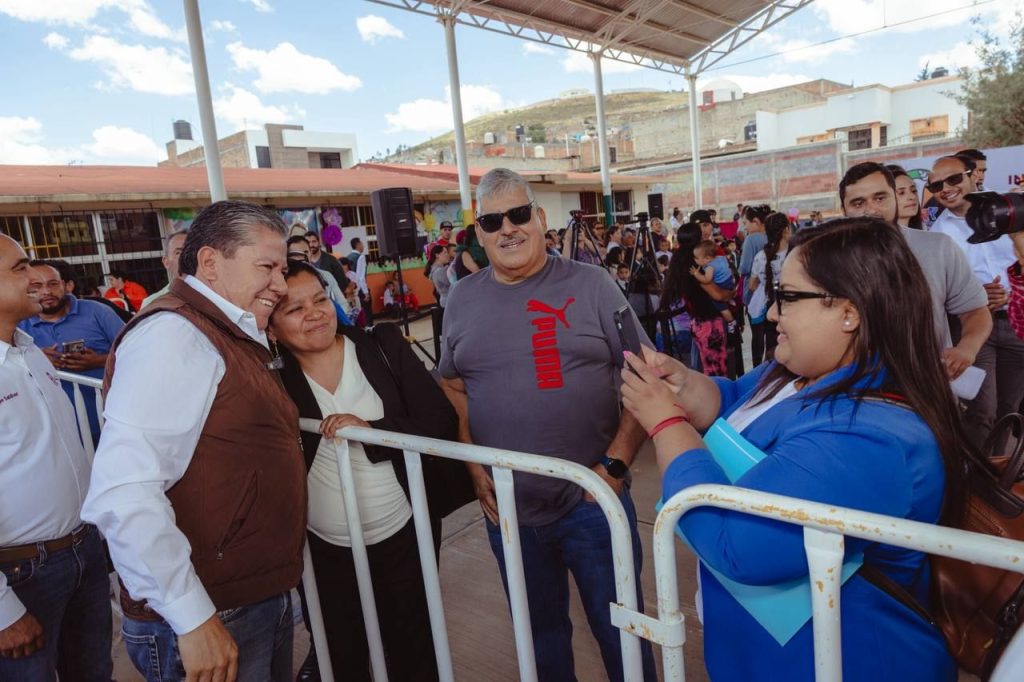 En compañía del Alcalde de Guadalupe, José Saldívar; de la Secretaria de Educación, Gabriela Evangelina Pinedo Morales, así como de Laura Elvia Bermúdez Valdés, directora del Instituto Zacatecano para la Construcción de Escuelas (Inzace), el mandatario entregó las obras de servicios sanitarios, redes eléctrica, sanitaria e hidráulica, así como plazas y andadores de acceso al inmueble.