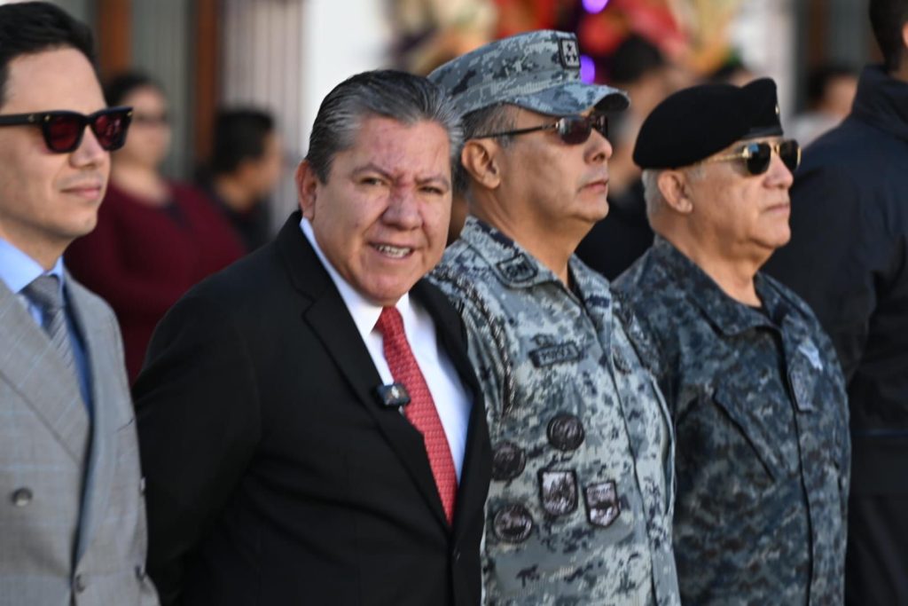 Entre los asistentes al presídium también estuvieron presentes Isaac Bravo López, comandante de la Decimoprimera Zona Militar; Arturo Medina Mayoral, Secretario de Seguridad Pública; Vicente Dimayuga Canales, coordinador estatal de la Guardia Nacional; Cristian Paul Camacho Osnaya, fiscal general de Justicia del Estado.
