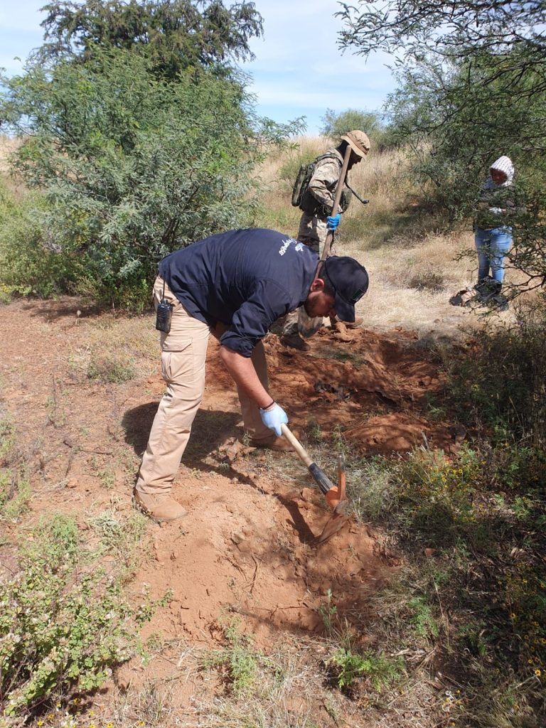 Zacatecas, Zac., 23 de octubre de 2025.- Apoyados con drones, georadares y herramienta de mano, autoridades estatales y federales realizaron, con el trabajo de dos células, búsquedas de personas desaparecidas en los municipios de Guadalupe, cuyo resultado fue positivo, y Ojocaliente.