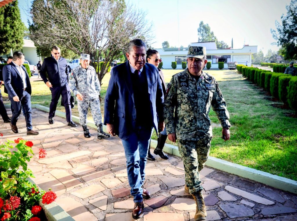 Desde las instalaciones de la 176 Compañía de la Guardia Nacional, ubicadas en San Jerónimo, Guadalupe, acompañado por Vicente Dimayuga Canales, coordinador estatal de la Guardia Nacional; Isaac Bravo López, comandante de la Decimoprimera Zona Militar; y Arturo Medina Mayoral, secretario de Seguridad Pública, el mandatario reconoció el trabajo coordinado entre las corporaciones, que ha permitido revertir las tendencias delictivas y fortalecer la paz en la entidad.
