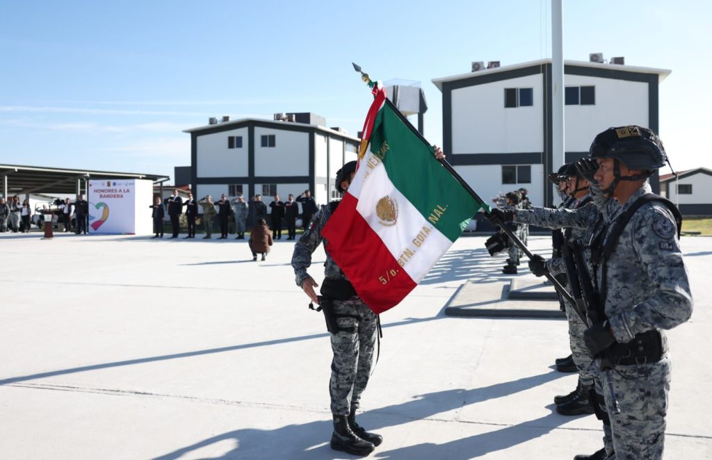 ● Encabeza el mandatario la Ceremonia de Honores a la Bandera en las instalaciones de la 176 Compañía de la Guardia Nacional, en San Jerónimo, Guadalupe