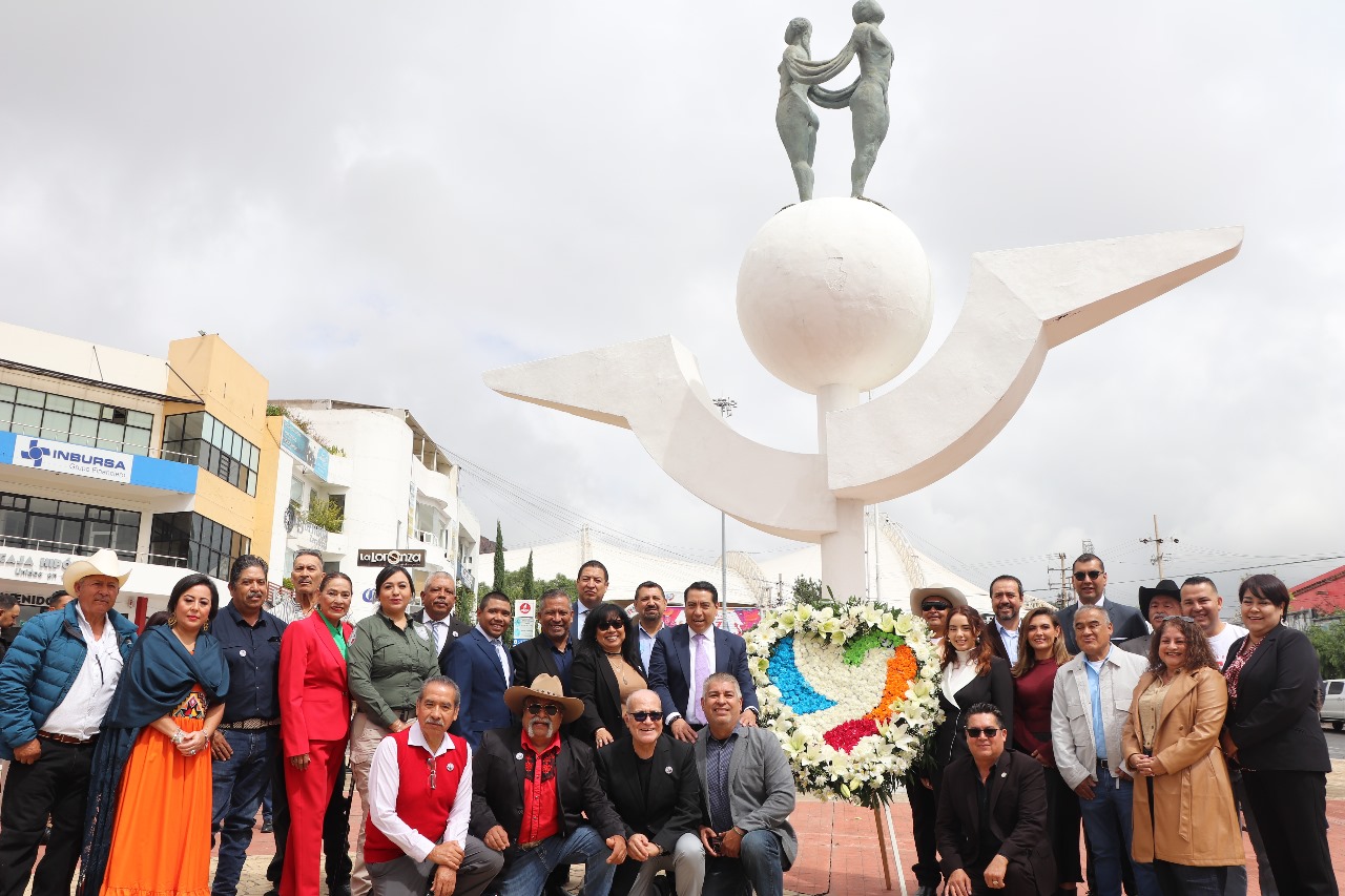 Zacatecas, Zac., 9 de septiembre de 2025.- En el marco del 22 Aniversario del Día de la Zacatecana y el Zacatecano Migrante, el Gobierno del Estado, que encabeza el mandatario David Monreal Ávila, junto a presidentes de Federaciones de Clubes Zacatecanos en Estados Unidos y México, colocaron una ofrenda floral en el Monumento al Migrante, en reconocimiento y en memoria de nuestros paisanos.