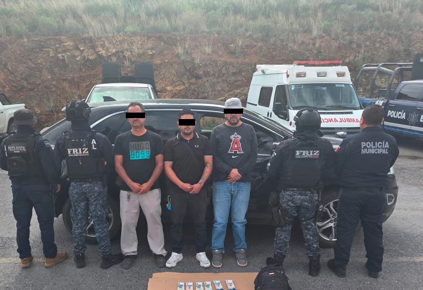 Los detenidos fueron identificados como Emmanuel Alejandro N., de 30 años de edad; Osvaldo N., de 37 años, y Juan Ramón N., de 53 años, todos originarios del estado de Jalisco. El vehículo asegurado corresponde a una camioneta Ford Edge modelo 2015.