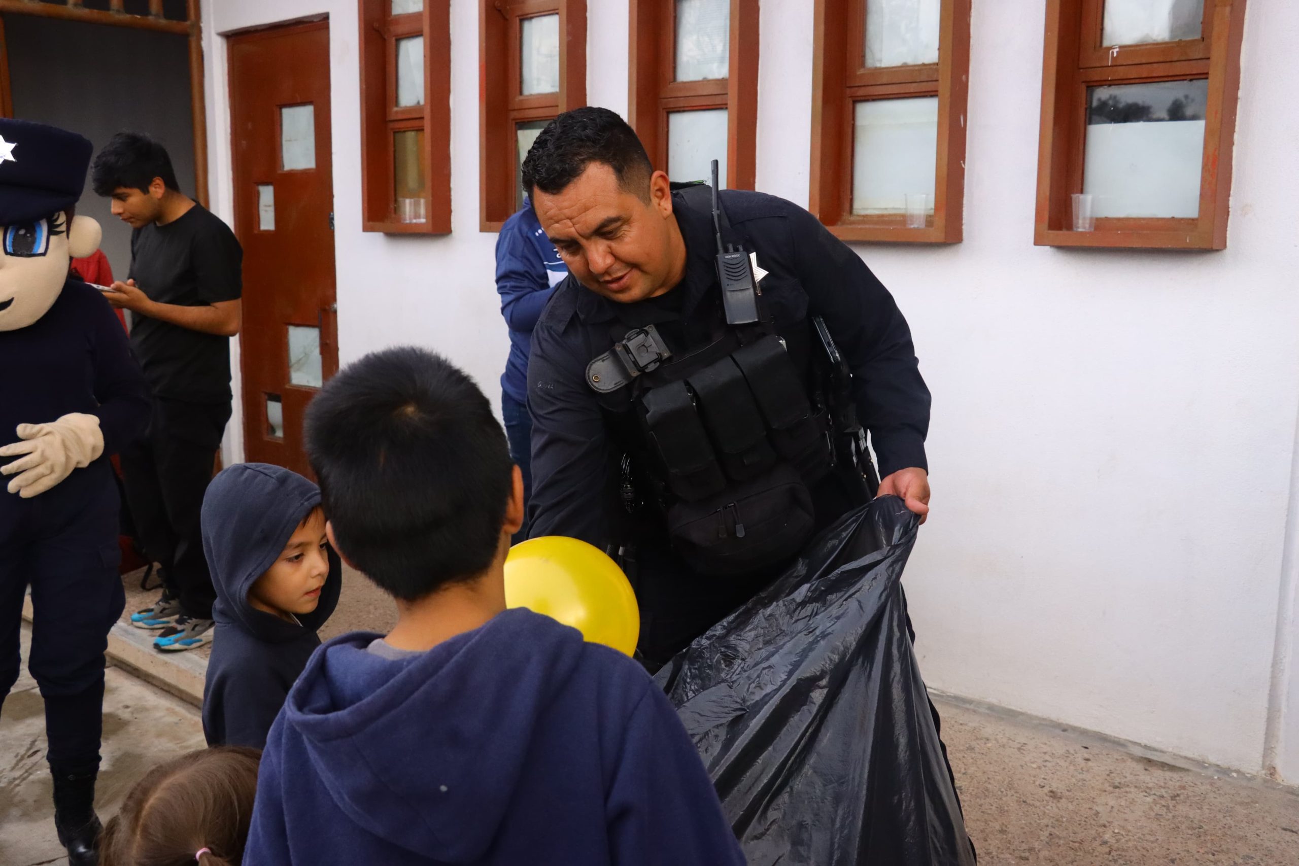 Zacatecas, Zac.- Llegó el programa “Compartiendo Sonrisas” al Polideportivo Alma Obrera, de la Secretaría de Seguridad Pública del Ayuntamiento de Zacatecas, donde niños y niñas pudieron convivir con oficiales capitalinos.