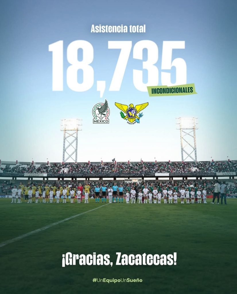 Zacatecas, Zac., 11 de abril de 2026.- En un hecho histórico, con récord de asistencia y un ambiente sin precedentes en el estadio Carlos Vega Villalba, miles de zacatecanas y zacatecanos disfrutaron del partido entre la Selección Mexicana de Futbol Femenil y su similar de Islas Vírgenes de los Estados Unidos de América, rumbo al Mundial de Brasil 2027.