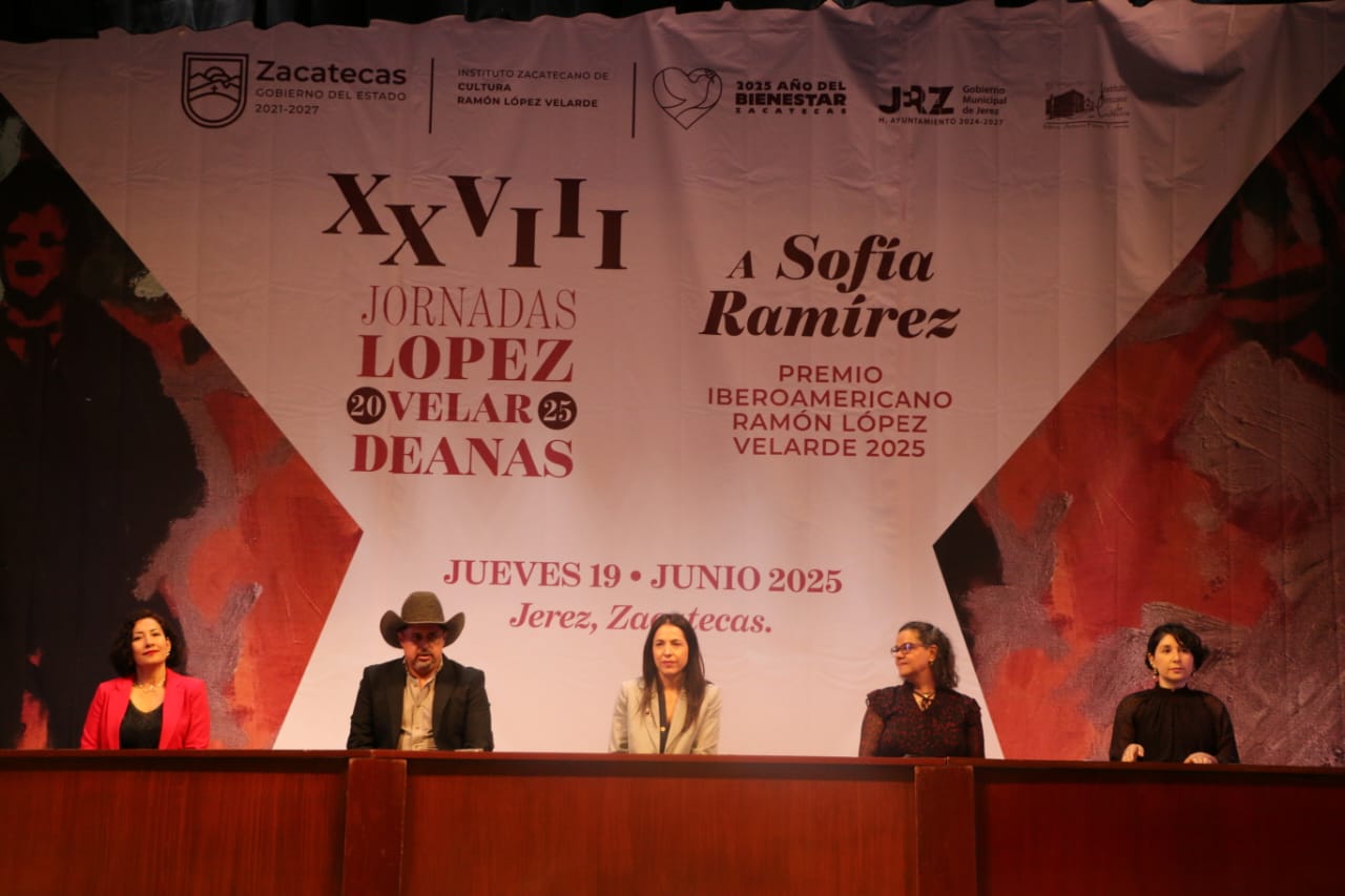 Jerez, Zac., 19 de junio de 2025.- En un emotivo acto celebrado en Jerez, Zacatecas, tierra natal del insigne poeta de la provincia, el Gobierno del Estado, a través del Instituto Zacatecano de Cultura (IZC) “Ramón López Velarde”, y la anfitrionía del Gobierno Municipal de Jerez, hizo entrega del Premio Iberoamericano Ramón López Velarde a la escritora, investigadora y promotora cultural, Sofía Ramírez.