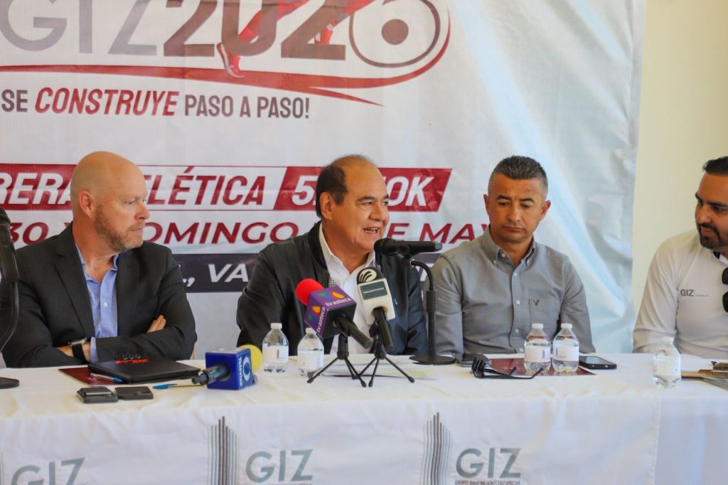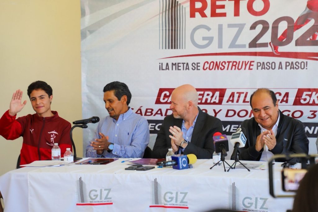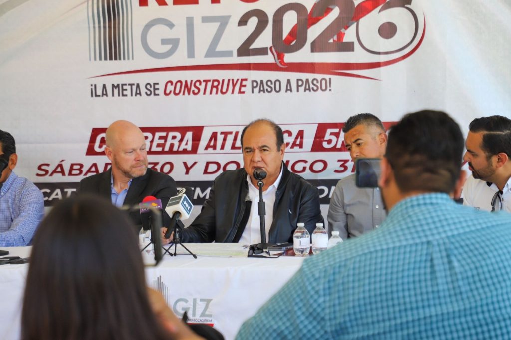 Zacatecas, Zac. 23 de abril de 2026.- En el marco de las acciones de difusión turística en distintos sectores, el Gobierno de Zacatecas, que encabeza el mandatario estatal David Monreal Ávila, presentó ante medios de comunicación la Carrera Atlética Reto GIZ 2026, que se realizará los días sábado 30 y domingo 31 de mayo, en la pista del estadio Carlos Vega Villalba.