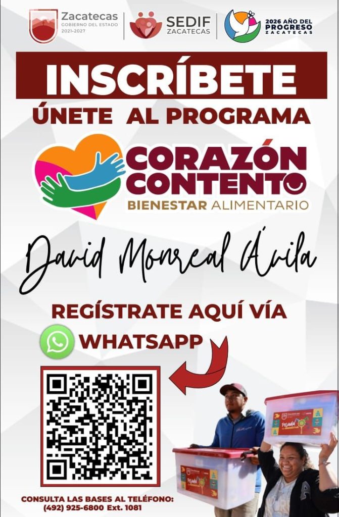 INVITA GOBERNADOR DAVID MONREAL ÁVILA A SUMARSE A BENEFICIOS DEL PROGRAMA ALIMENTARIO CORAZÓN CONTENTO.