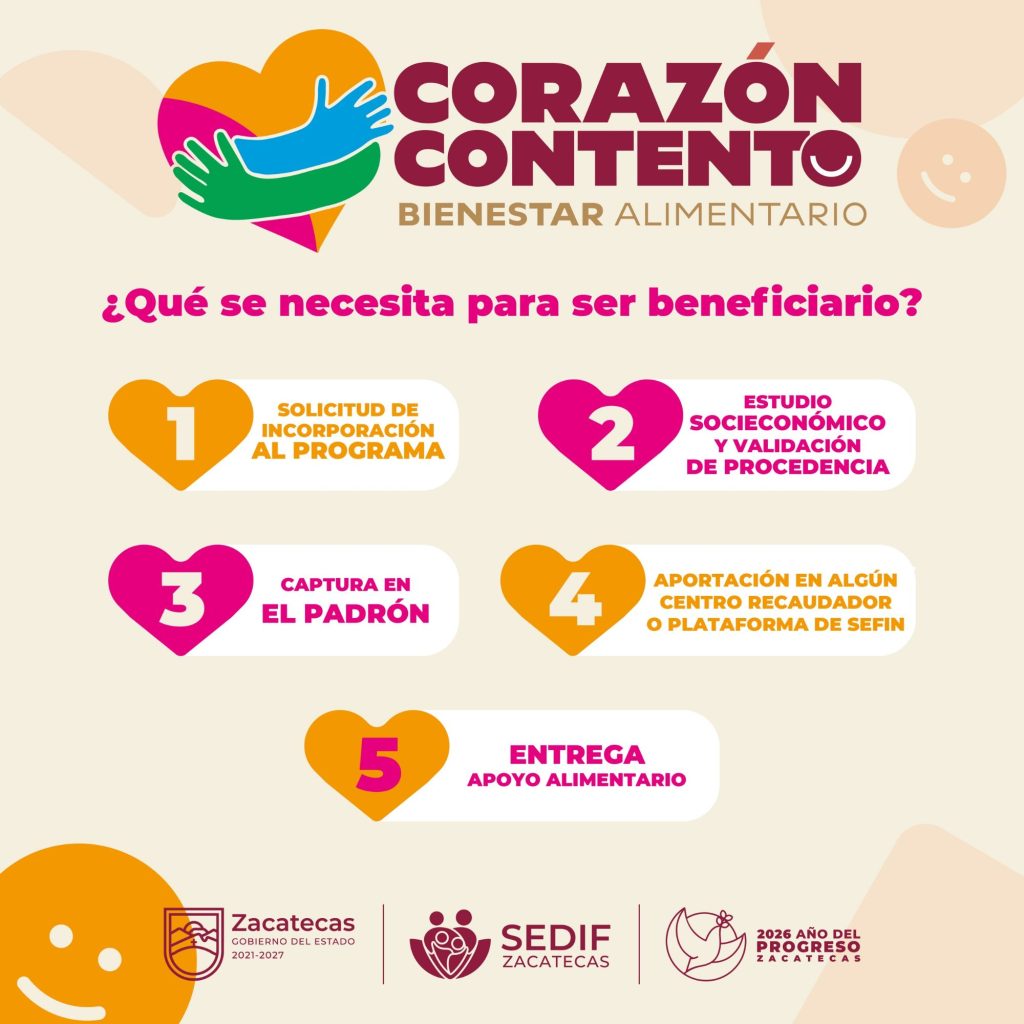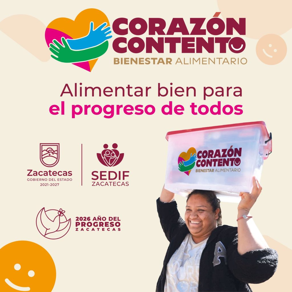 Para fortalecer el programa Corazón Contento, el mandatario estatal dio apertura a que este esquema de apoyo sea universal para quienes deseen adquirir los paquetes alimentarios que se distribuyen a través del Sistema Estatal para el Desarrollo Integral de la Familia (SEDIF) en todo el territorio zacatecano.