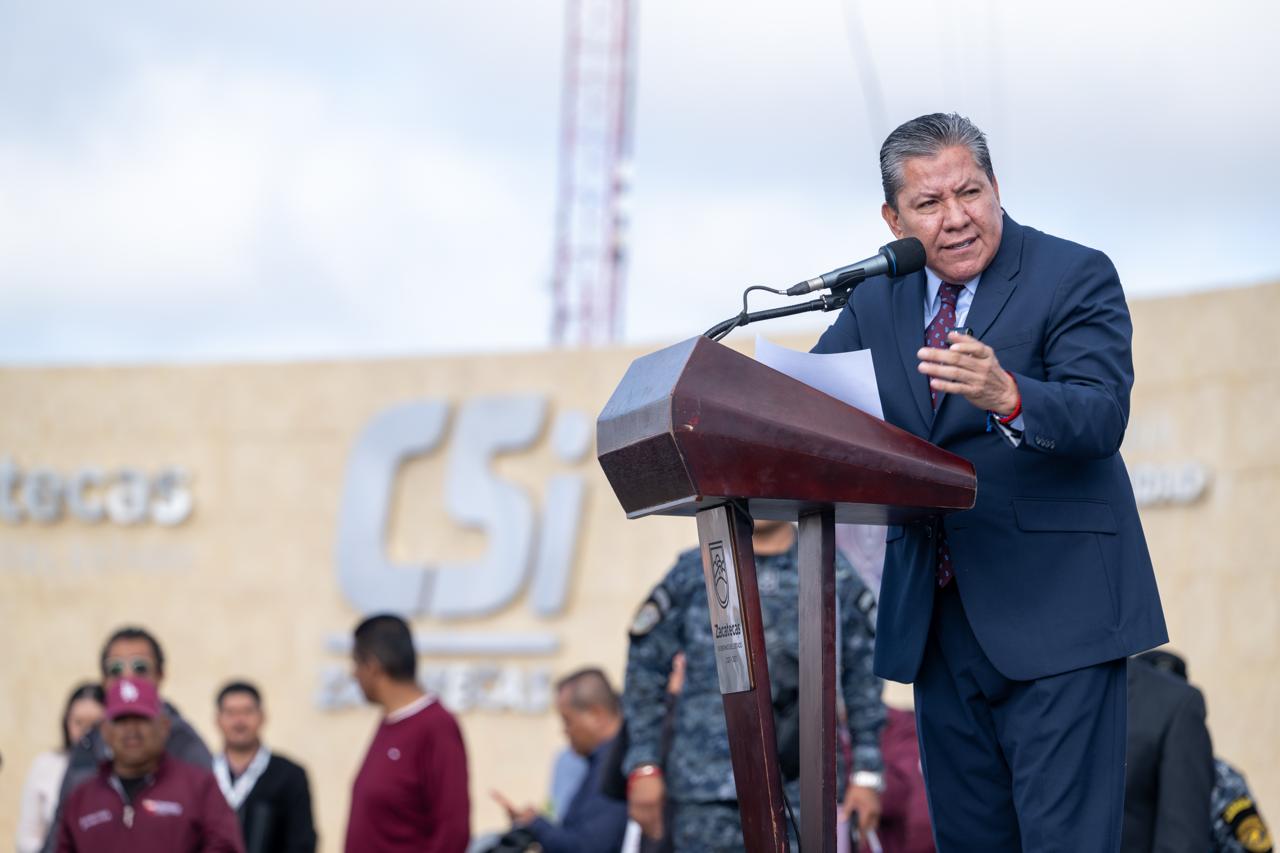 Guadalupe, Zac., 4 de septiembre de 2025.- Por primera vez, el Gobernador David Monreal Ávila encabezó la ceremonia de honores e izamiento de la bandera en la plaza cívica del nuevo Centro de Control, Comando, Comunicaciones, Cómputo e Inteligencia (C5i).