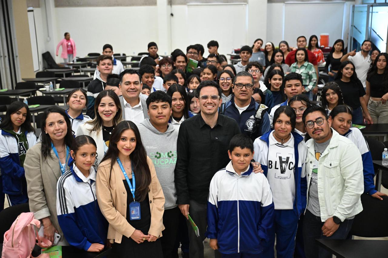 En el evento, realizado esta mañana, el Secretario General de Gobierno, Rodrigo Reyes Mugüerza, invitó a las juventudes a que se mantengan atentas de la información que consumen y prevenir, así, incluso ser víctimas de algún delito.