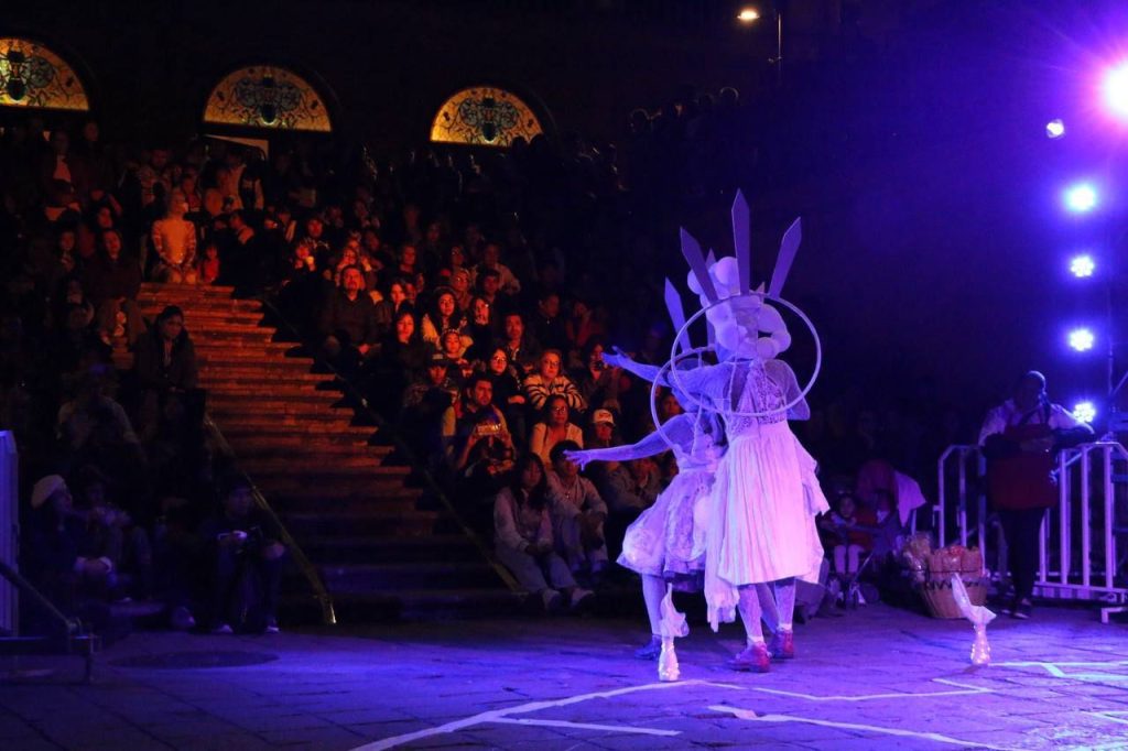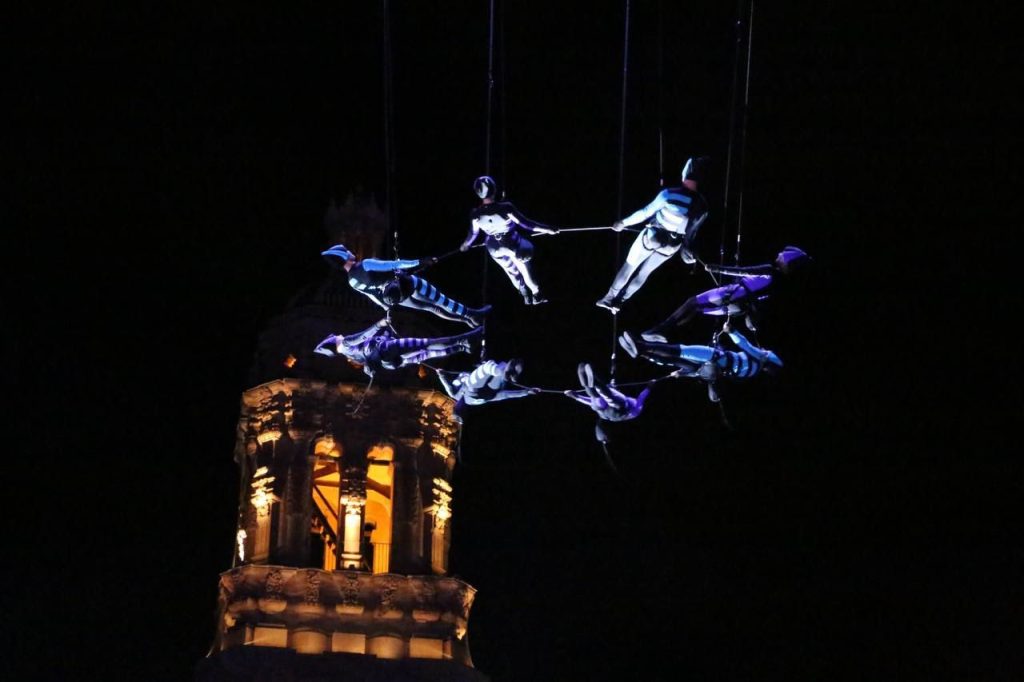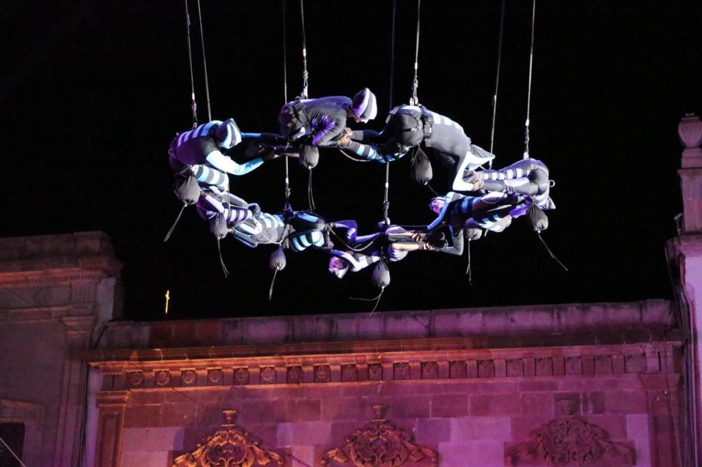 Una grúa de más de 40 metros de altura permitió que las y los artistas se suspendieran en el aire, al ejecutar sorprendentes figuras y coreografías que convirtieron el cielo zacatecano en un escenario lleno de magia y emoción. En tierra, las actuaciones teatrales y la banda en vivo marcaron el pulso de una celebración especial, que atrapó tanto a infantes como a adultos.