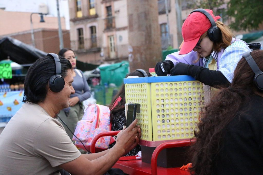 Antes, propios y visitantes fueron testigos de una jornada llena de arte, color y emociones, en diversos puntos de la ciudad. En Plaza Bicentenario, la agrupación La Dudosa Teatro, de Aguascalientes, presentó “El mundo en una caja”, una intervención urbana y animación de objetos que, a través de tres microhistorias, invitó al público a redescubrir la magia de lo cotidiano y la imaginación que habita en los pequeños detalles.