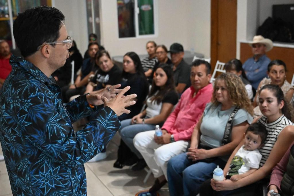 Rodrigo Reyes explicó a las y los colonos de Colinas del Padre que Punto Inteligente Vecinal consiste en la instalación de videovigilancia inteligente, con análisis automatizado, a través de la cual, mediante una aplicación móvil, las y los usuarios pueden emitir alertas de emergencia con geolocalización; incluso, la tecnología permite detectar rostros y placas de circulación de vehículos y altavoces.