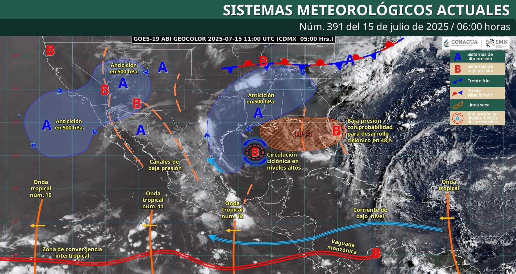 Nubosidad en gran parte del estado con bancos de niebla aislados y posibilidad de chubascos con lluvias puntuales fuertes de 25 a 50 mm para los municipios del norte, noroeste, oeste, suroeste, sureste y sur; lloviznas y lluvias escasas con tormentas aisladas en el resto del estado, durante la tarde y noche.