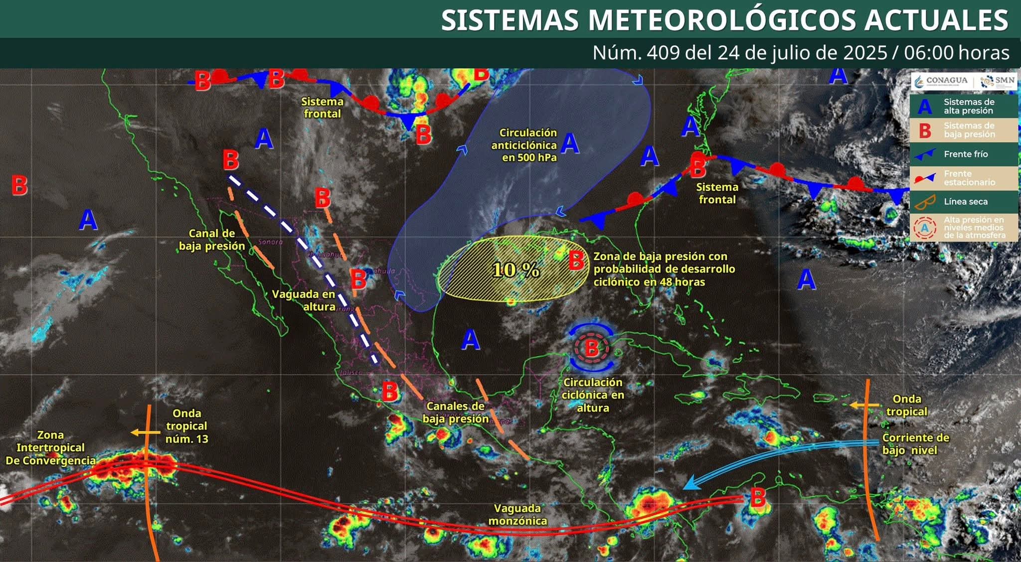 Nubosidad ocasional con bancos de niebla dispersas y posibilidad de lluvias dispersas o lloviznas aisladas de 0.1 a 5 mm para los municipios del suroeste y sur; en el resto del estado con cielo mayormente despejado.