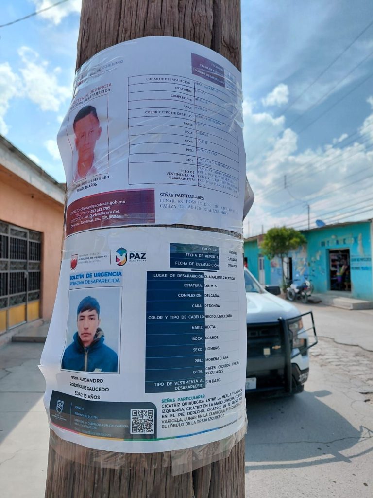 Pinos, Zac., 22 de abril de 2026.- Este día, el Gobierno de Zacatecas, que encabeza el mandatario David Monreal Ávila, y la Fiscalía General de Justicia del Estado llevaron a cabo una prospección forense y pega de cédulas, en el municipio de Pinos, con resultado positivo.