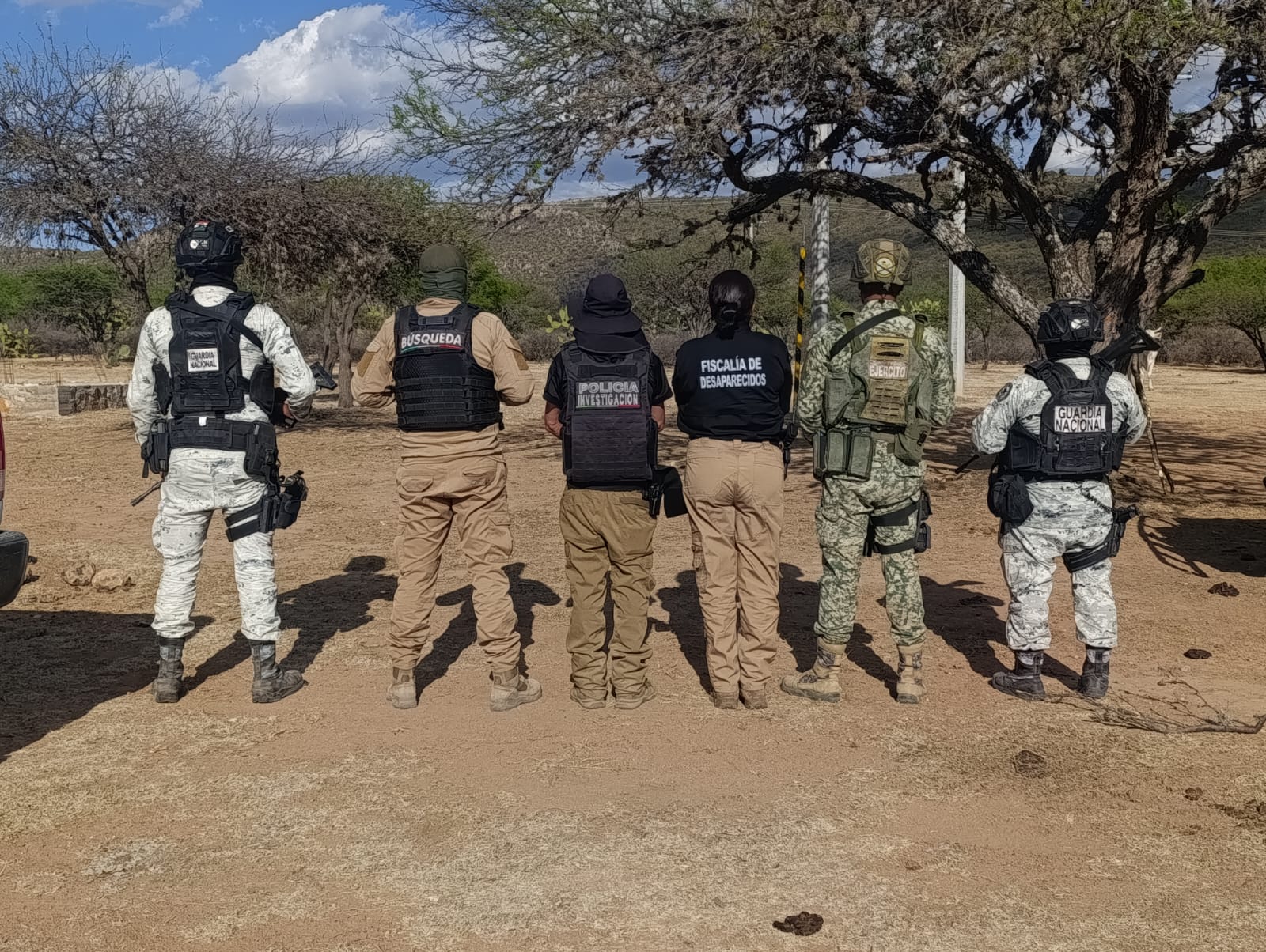 Acompañados por personal de la Secretaría de Seguridad Pública, de la Guardia Nacional y del Ejército Mexicano, realizaron labores de búsqueda, apoyados con drones, georadares y herramientas de mano, con el propósito de recabar indicios que permitan la localización de personas reportadas como desaparecidas.