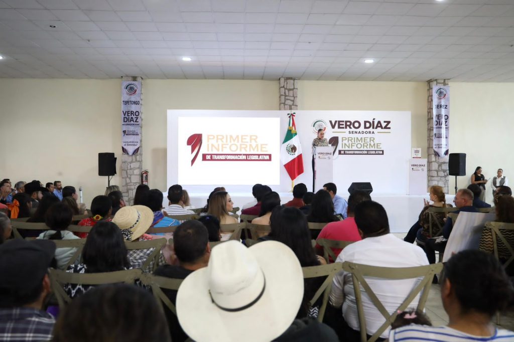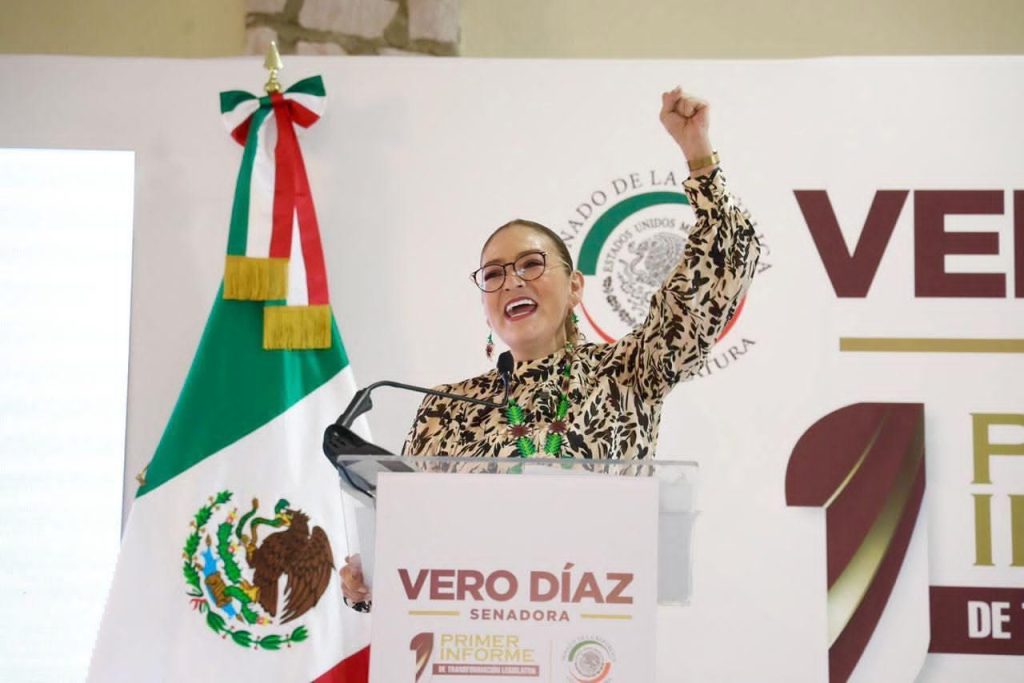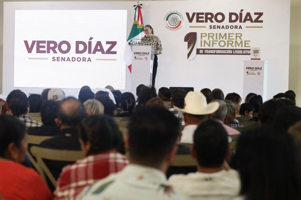 Jerez, Zacatecas.– En un acto de unidad y respaldo ciudadano, la senadora Vero Díaz, integrante del grupo parlamentario de MORENA, rindió su Primer Informe Legislativo, Legislando por el Bienestar, en el Pueblo Mágico de Jerez. Ahí refrendó su compromiso con la Cuarta Transformación y destacó los avances logrados gracias al llamado Plan C, con reformas constitucionales que ya benefician a más de 100 mil habitantes de la región mediante programas sociales ahora protegidos por la Constitución.