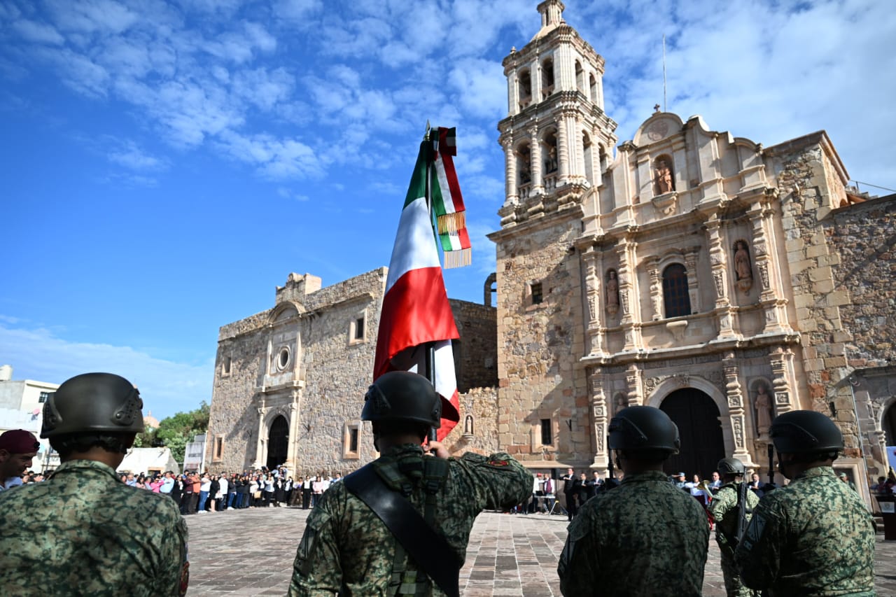 Durante los Honores a la Bandera, desde el Pueblo Mágico de Sombrerete, el mandatario refirió que los resultados en materia de seguridad han sido reconocidos por la Presidenta Claudia Sheinbaum Pardo, de tal forma que el estado es ejemplo de estudio y análisis en todo México.