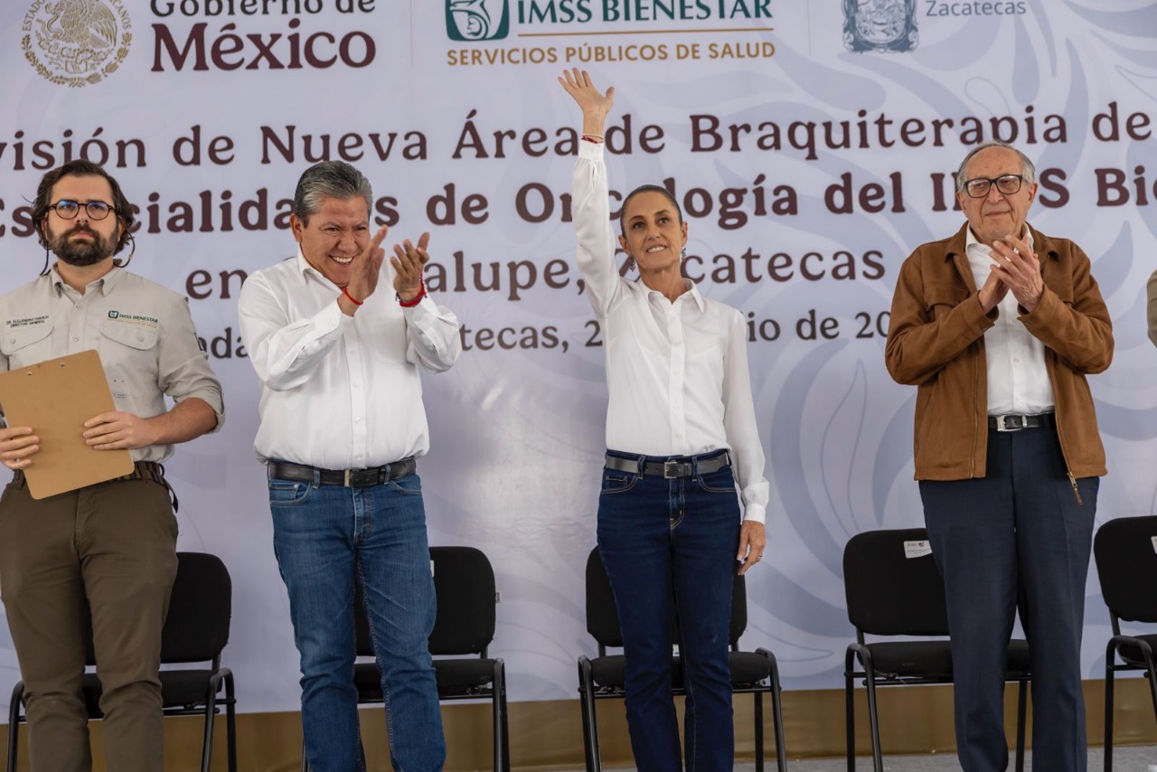 Guadalupe, Zac., 26 de julio de 2025.- La Presidenta de México, Claudia Sheinbaum Pardo, junto con el Gobernador David Monreal Ávila, supervisó la nueva área de Braquiterapia de la Unidad de Especialidades de Oncología del IMSS Bienestar, en el municipio de Guadalupe, donde anunció una inversión histórica para fortalecer la infraestructura y equipamiento del sistema de salud pública en la entidad.
